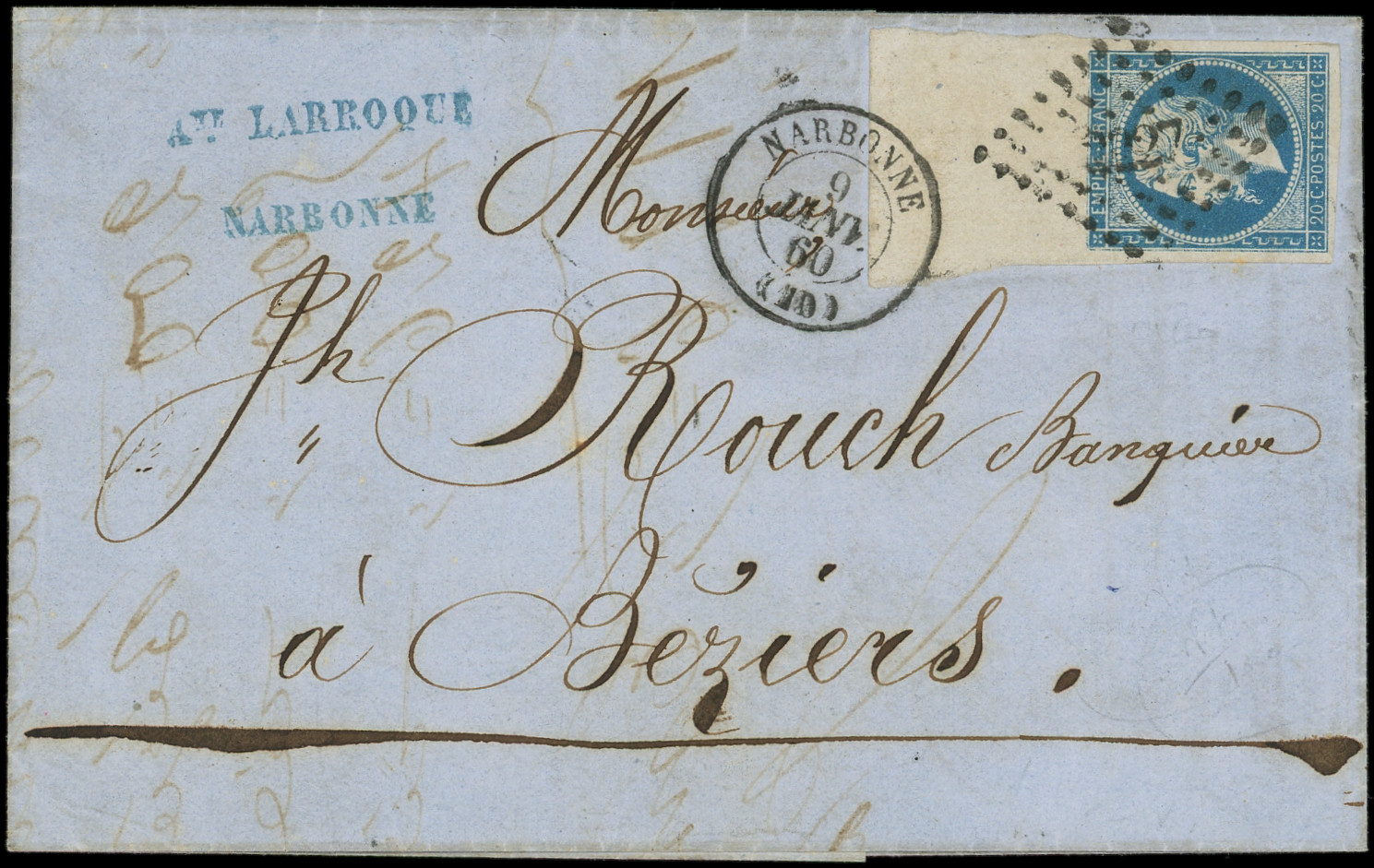 I, grand BORD de FEUILLE, obl. PC 2227 s. LAC, càd T15 NARBONNE 9/1/60, Superbe (Image)