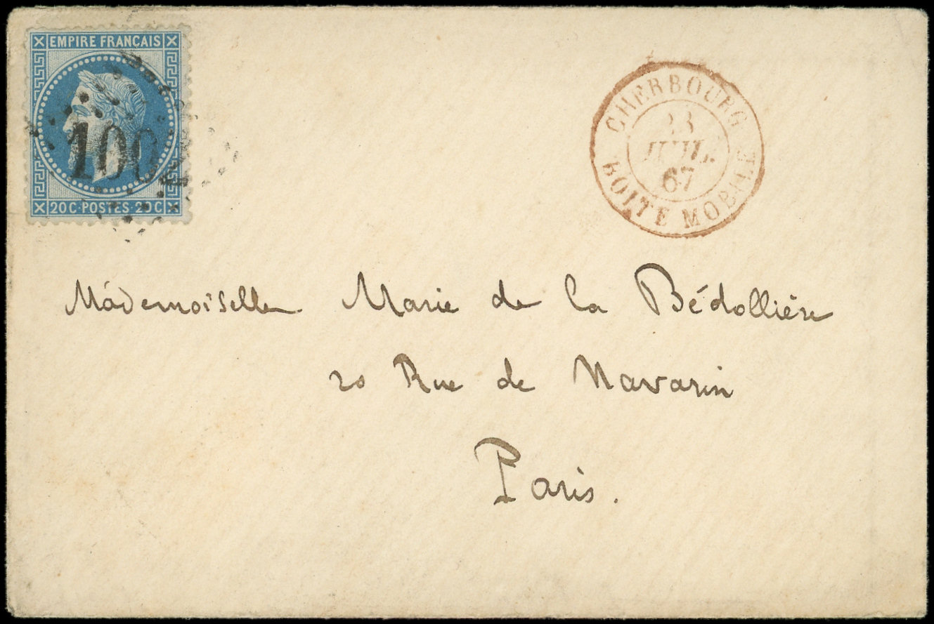 obl. GC 1002 s. Env., càd CHERBOURG BOITE MOBILE 23/7/67 en ROUGE, RR et TTB (Image)