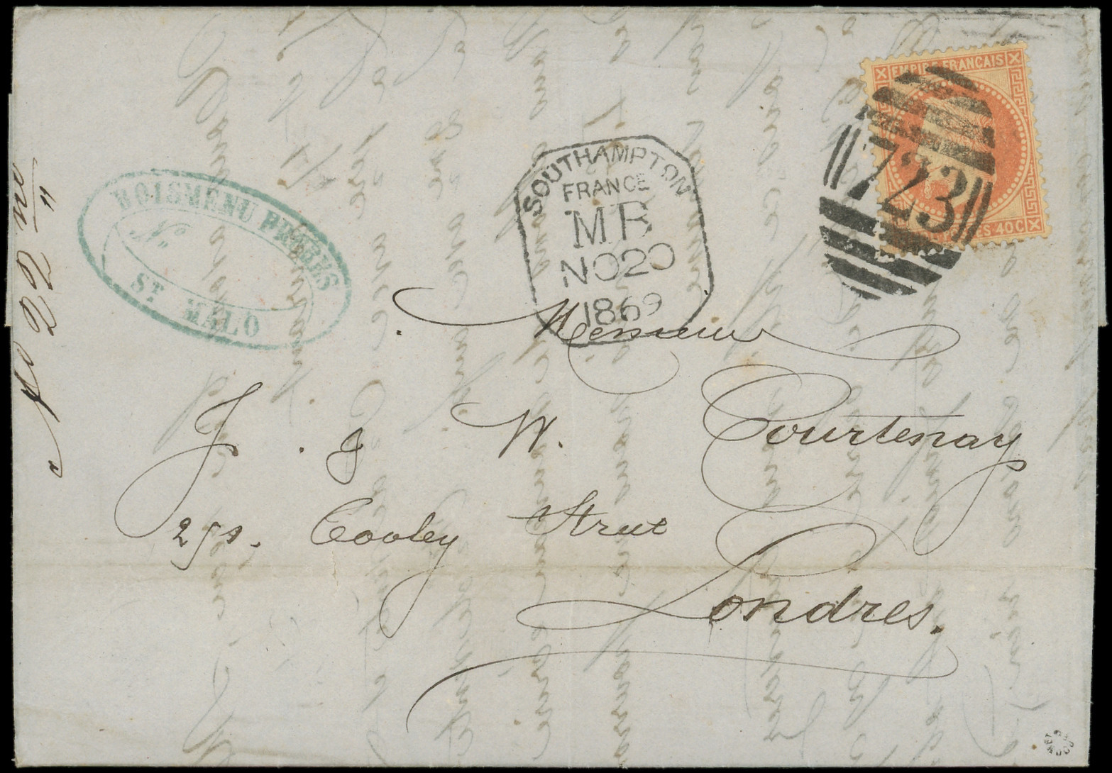 obl. GC ANGLAIS 723 s. LAC de St MALO, càd SOUTHAMPTON 20/11/69 et arr. LONDON 20/11, Superbe (Image) (Image2)