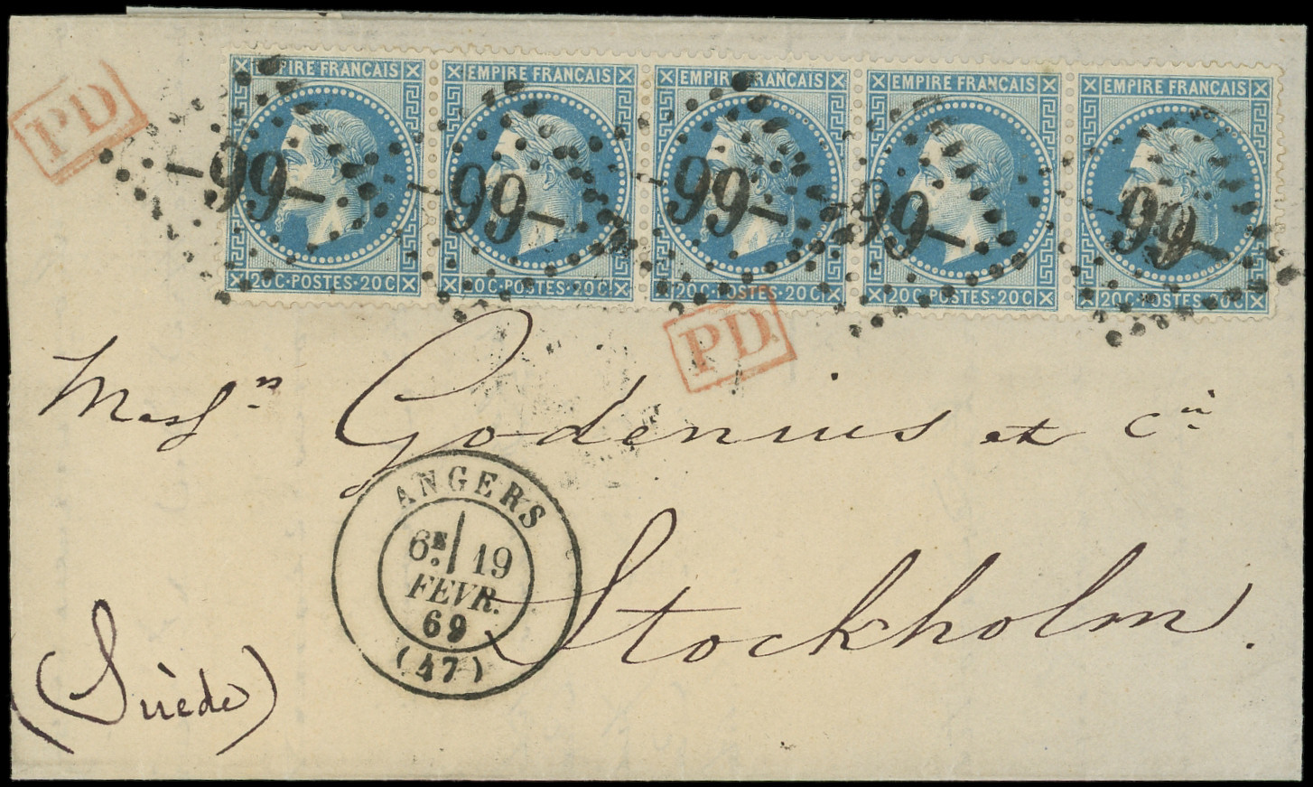 II, BANDE de 5 obl. GC 99 s. LAC, càd T17 ANGERS 19/2/69, arr. STOCKHOLM 25/2, Superbe (Image) (Image2)