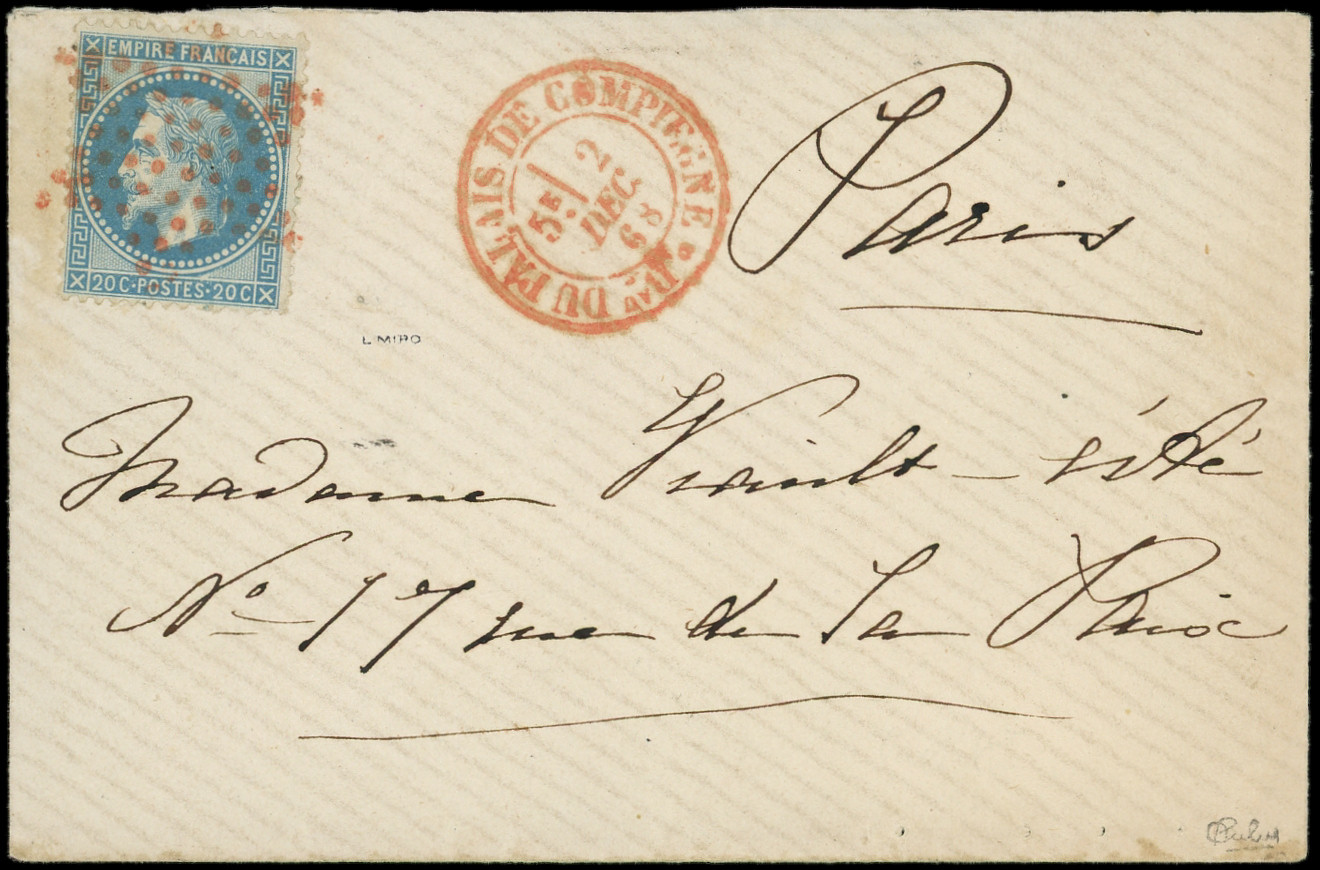 II, obl. Etoile s. Env., càd Bau DU PALAIS DE COMPIEGNE 2/12/68, le tout en ROUGE, arr. Paris 3/12, Superbe (Image) (Image2)