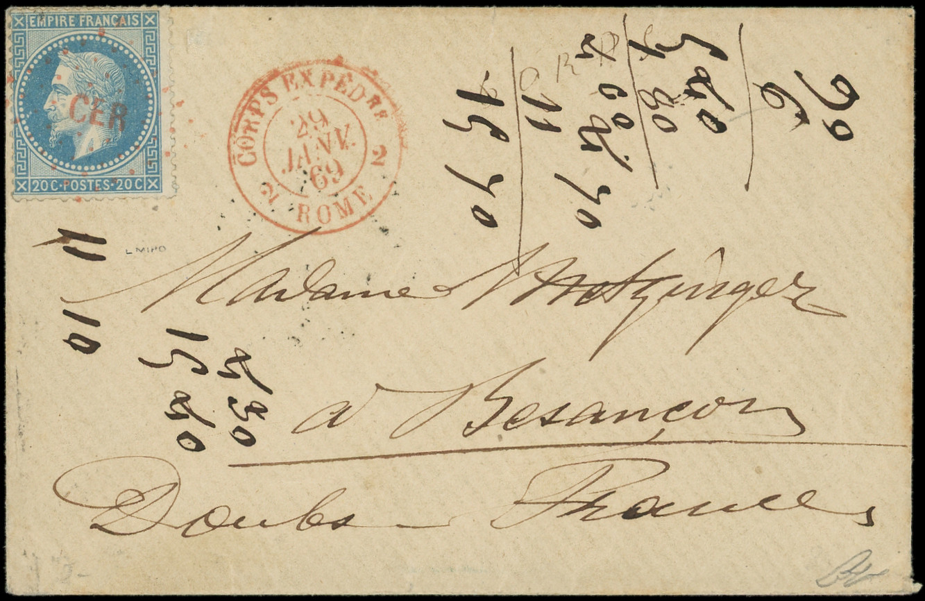 II, obl. Los. CER s. Env., càd CORPS EXPEDre 2 ROME 2 29/1/69, le tout en ROUGE, Superbe (Image) (Image2)