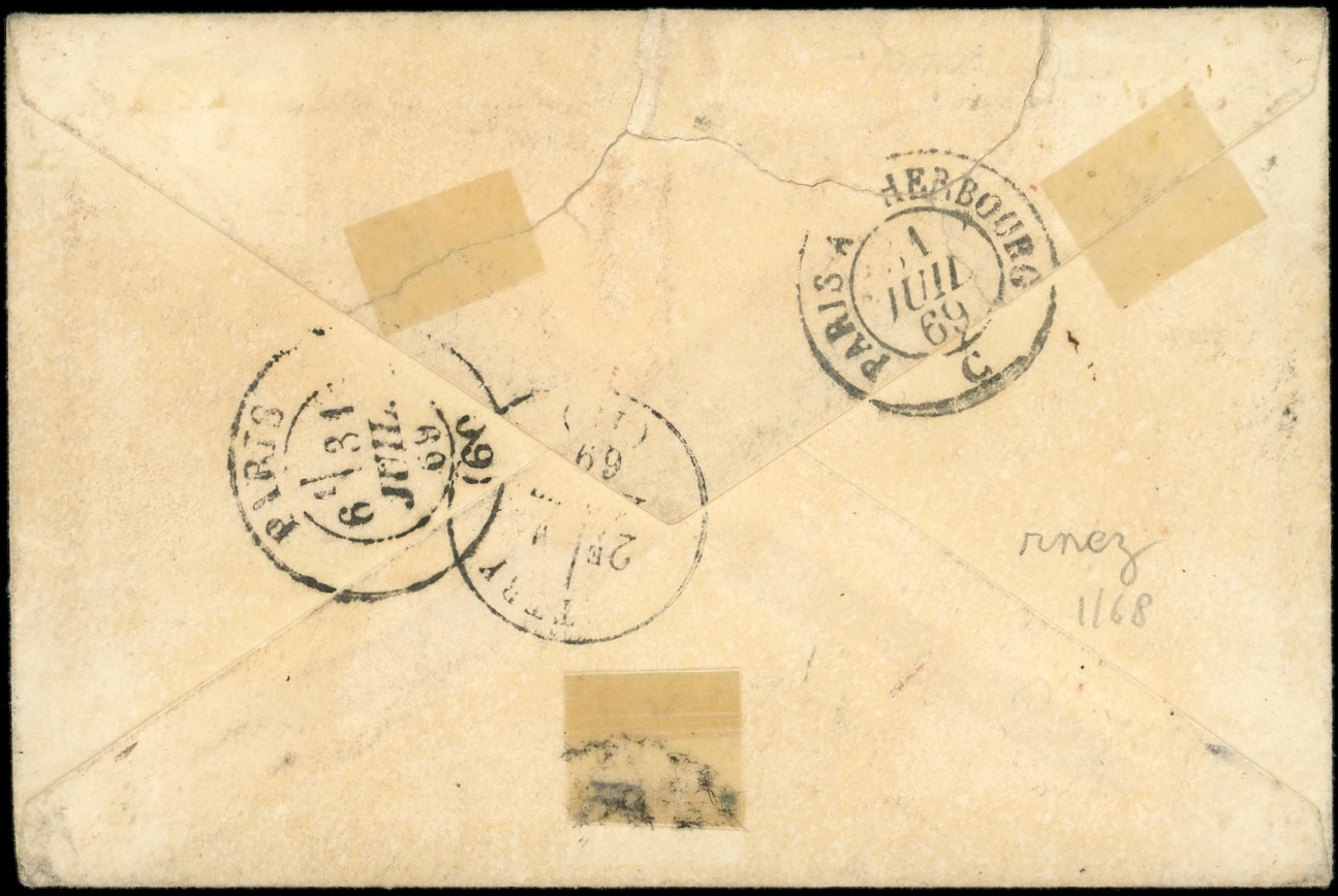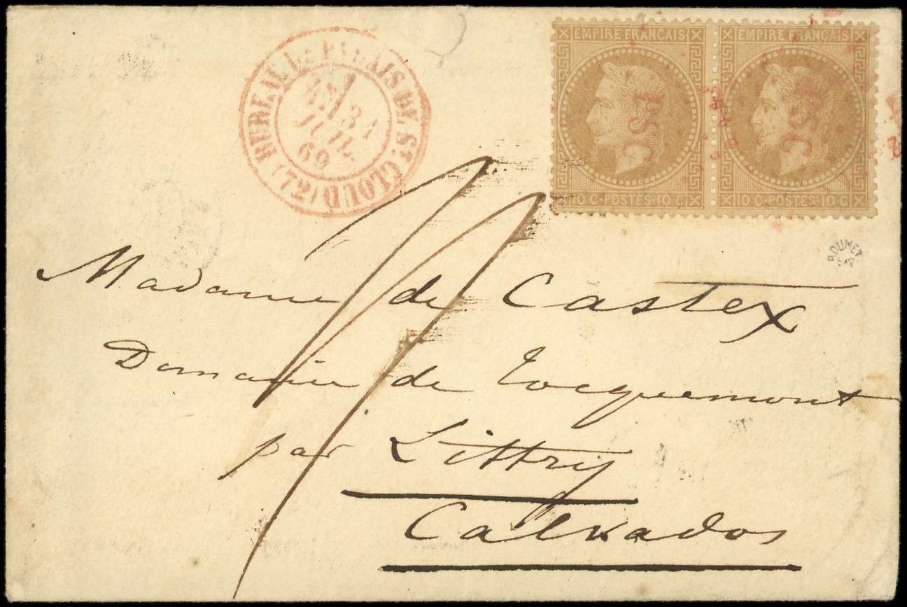 T II, PAIRE obl. Los. PSC s. Env., càd BUREAU DU PALAIS DE St CLOUD 31/7/69, le tout en ROUGE, TTB (Image) (Image2)