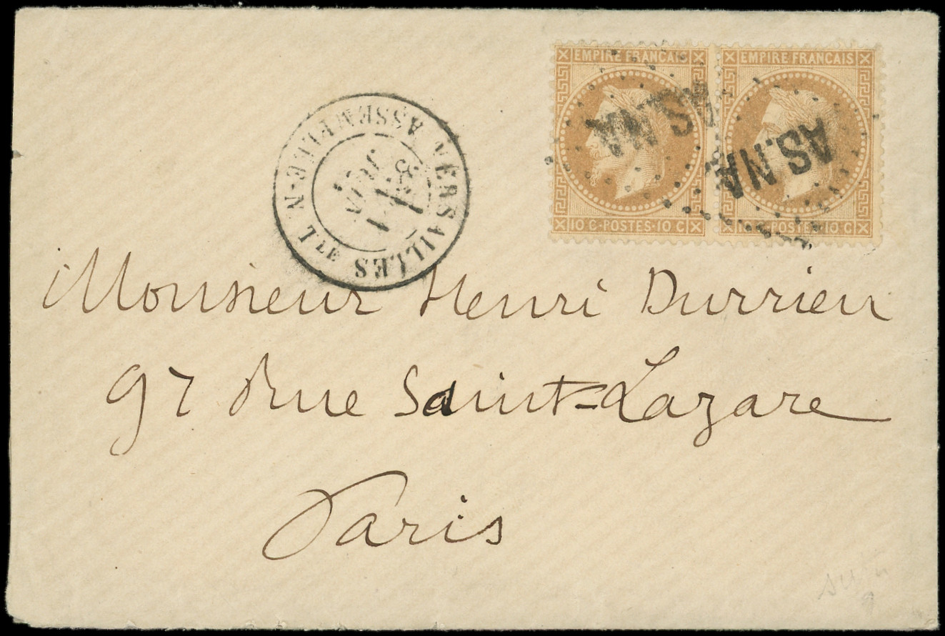 T II, PAIRE obl. Los. AS.NA s. Env. avec correspondance, càd VERSAILLES ASSEMBLEE NATIONALE 1/6/71, Superbe (Image)
