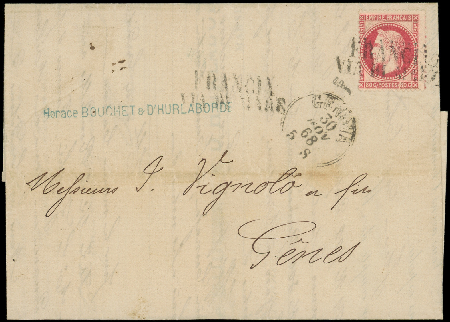 (2) obl. Griffe BASTIMENTI/MERCANTILI/ESTERO apposée à l'arrivée à PALERMO 7/2/69 s. LAC de Marseille 30/1, RR et Superbe (Image) (Image2)
