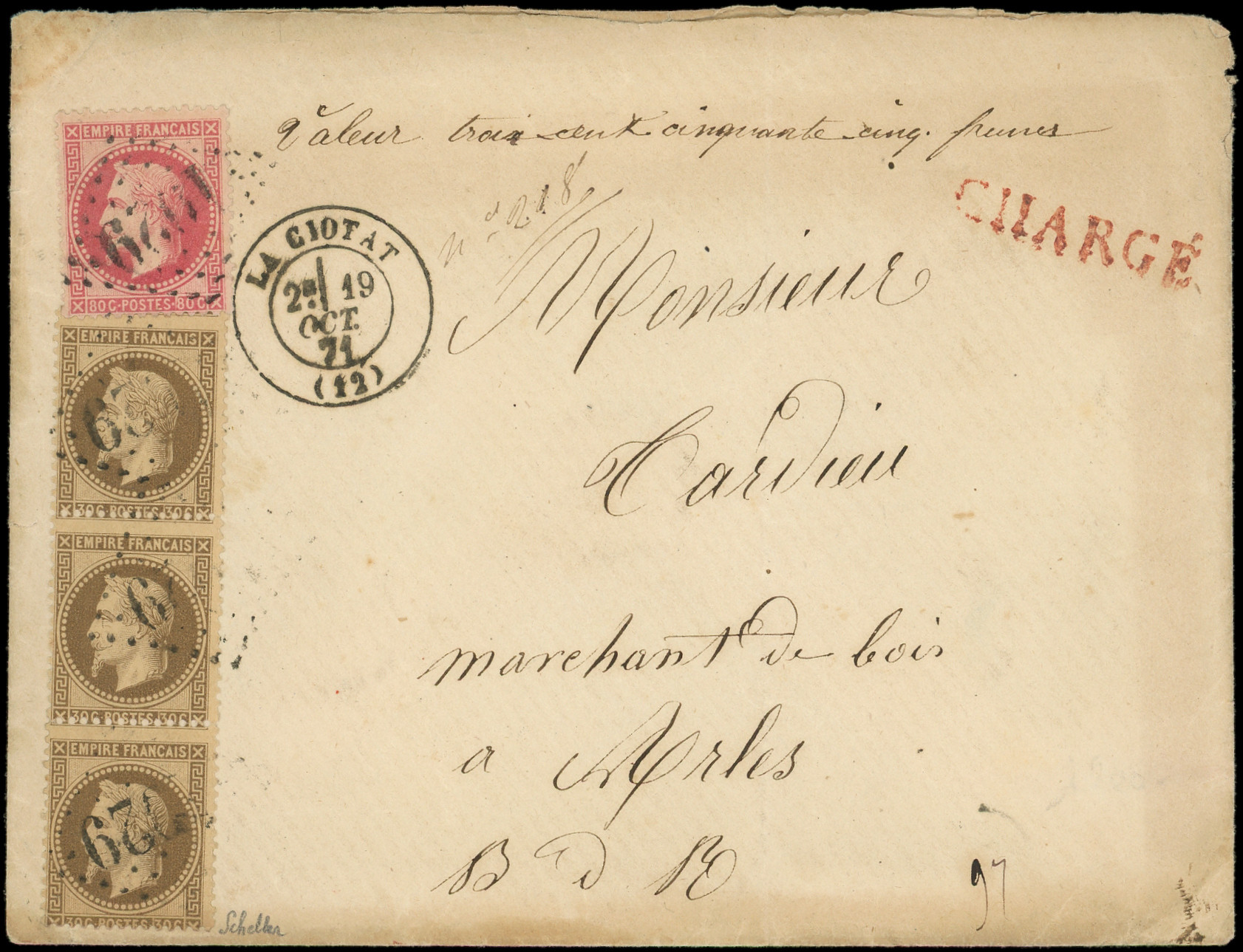 BANDE de 3 et 80c. obl. GC 1029 s. Env. CHARGE, càd T17 LA CIOTAT 19/10/71, TTB (Image)