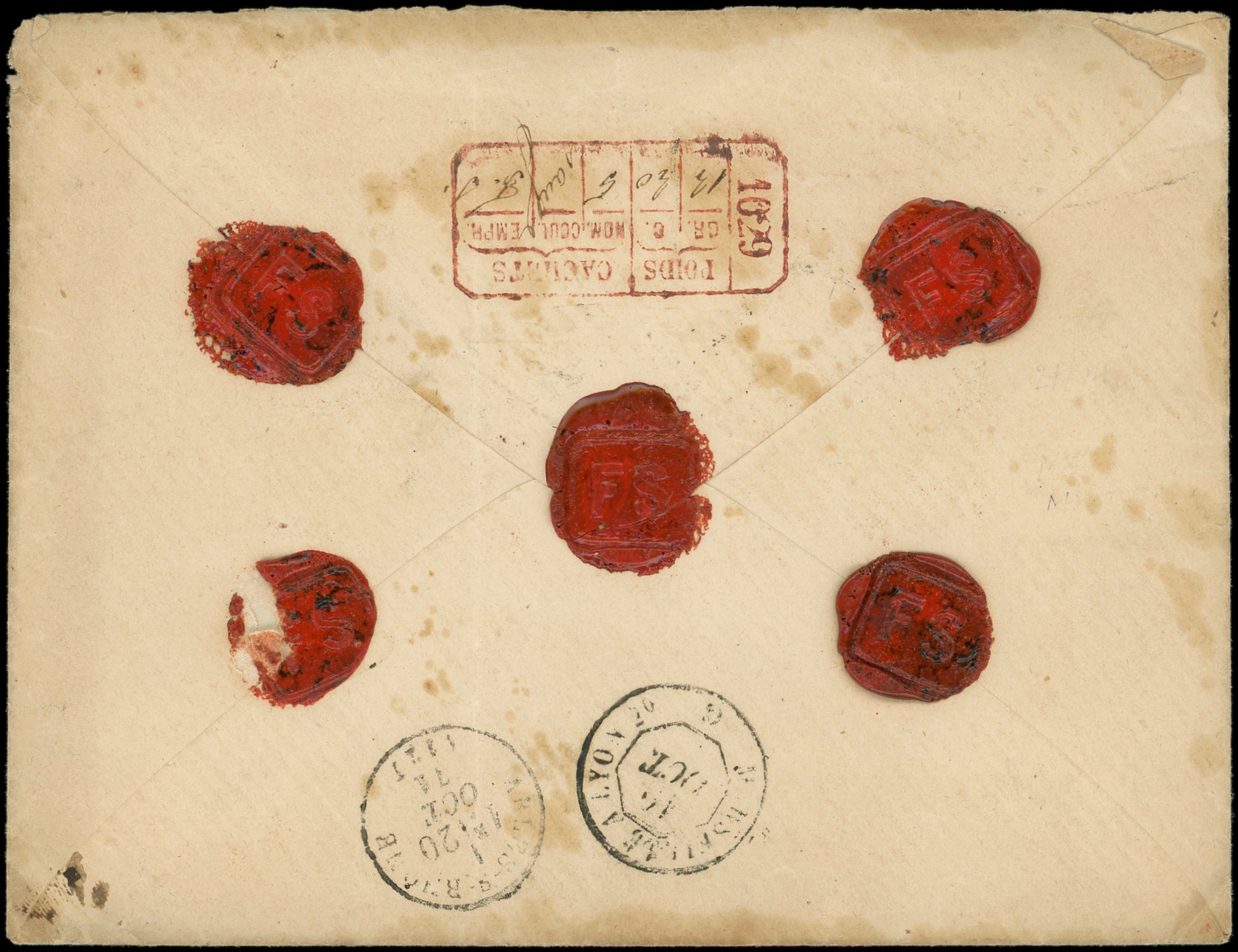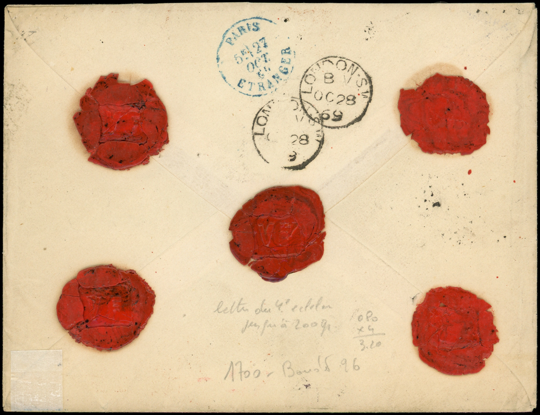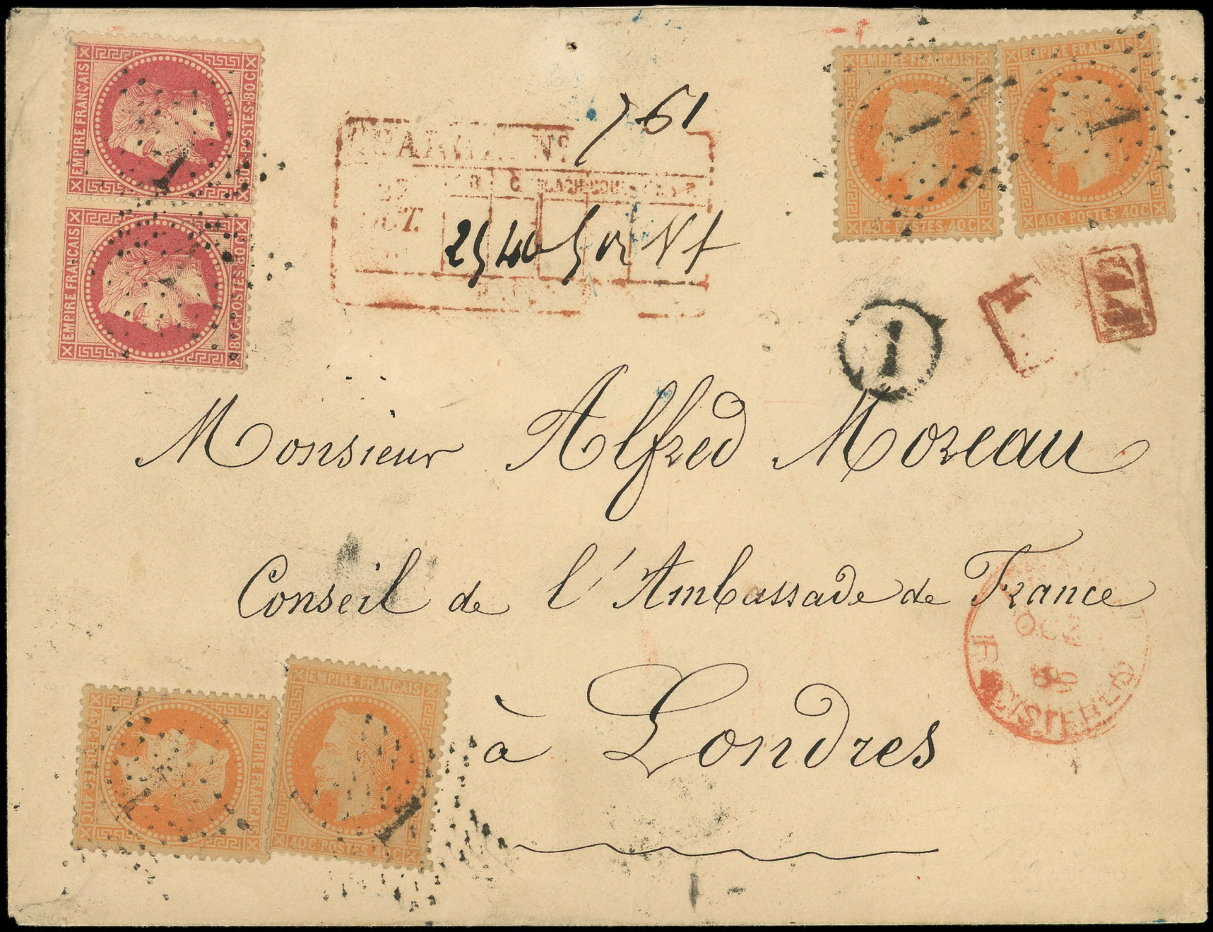 et 80c. PAIRE obl. Etoile 1 s. Env. CHARGE, collecteur 25/10 au recto, arr. LONDON 28/10, combinaison TTB (Image) (Image2)