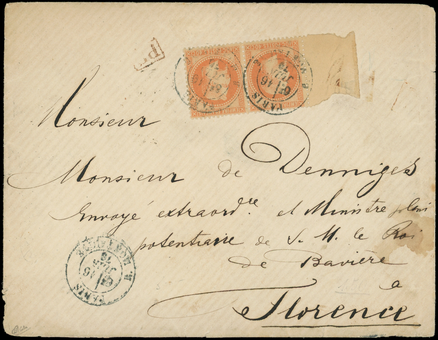 PAIRE bdf obl. càd R. Montaigne 16/6/70 répété à côté et en BLEU, arr. FIRENZE 18/6, combinaison Superbe (Image) (Image2)