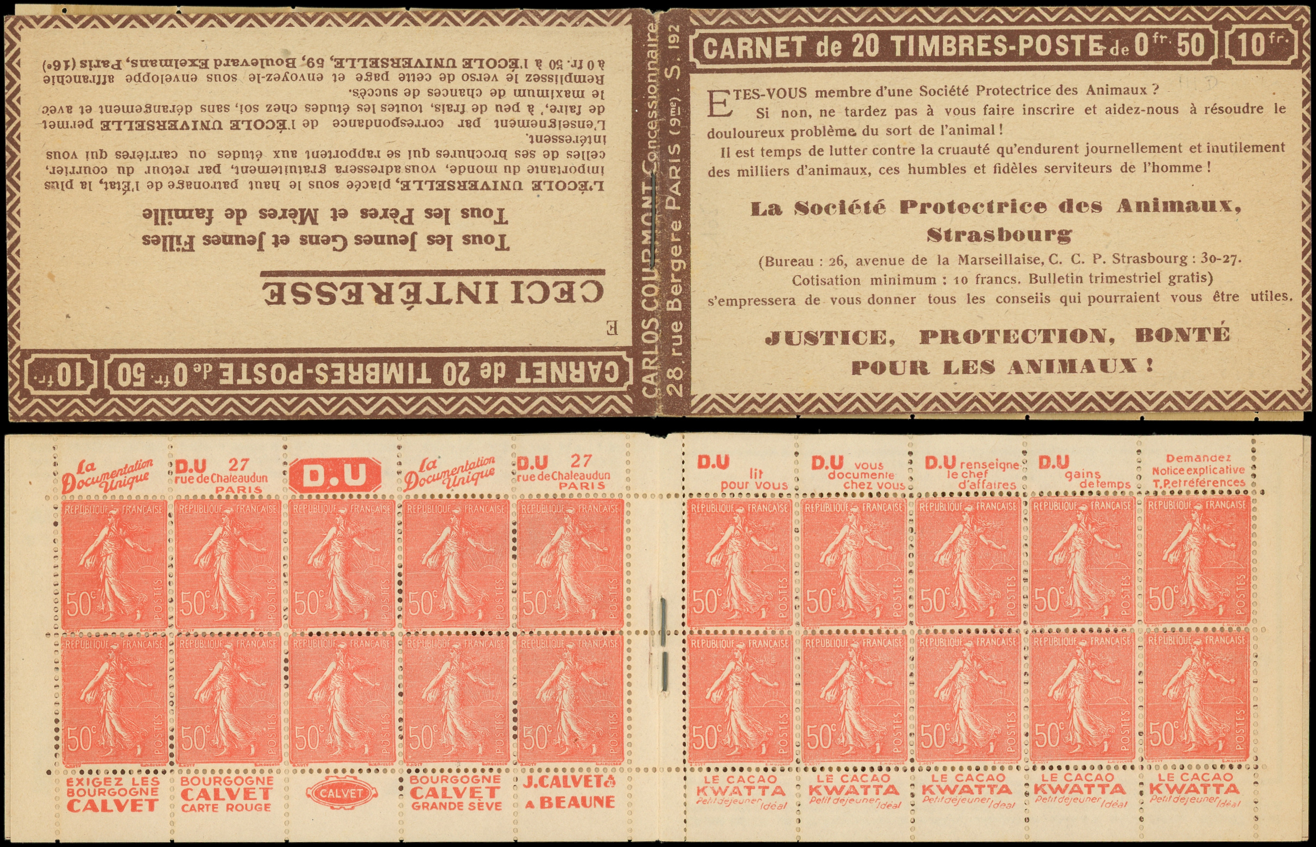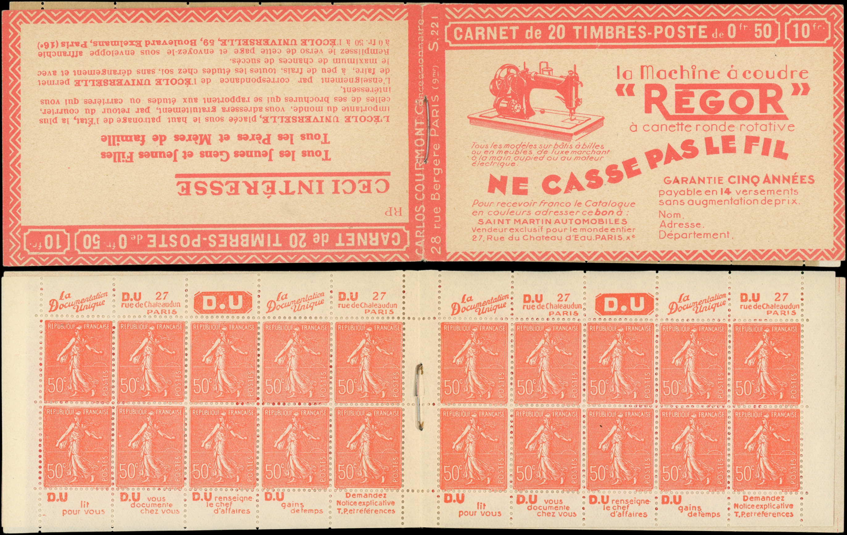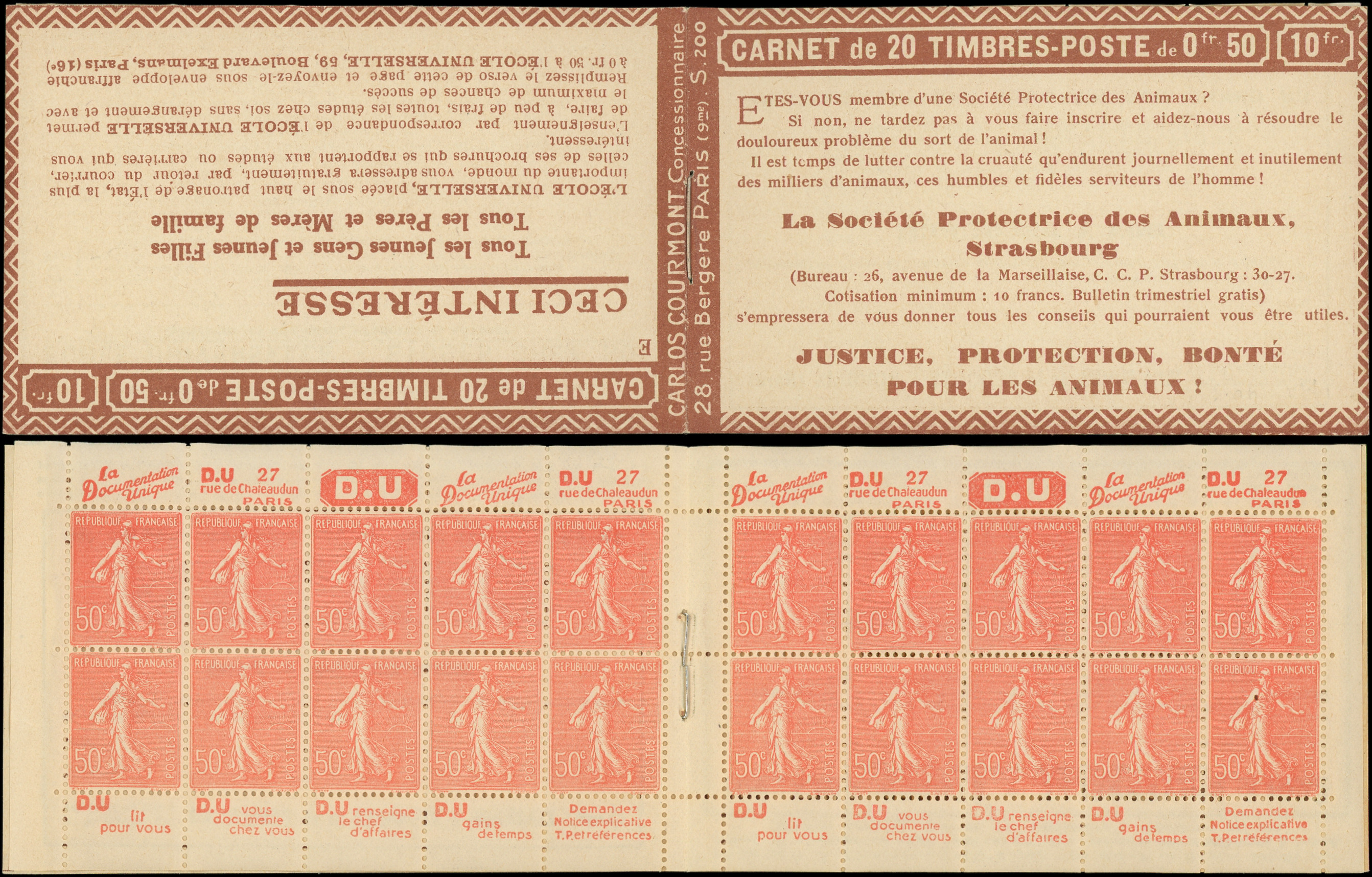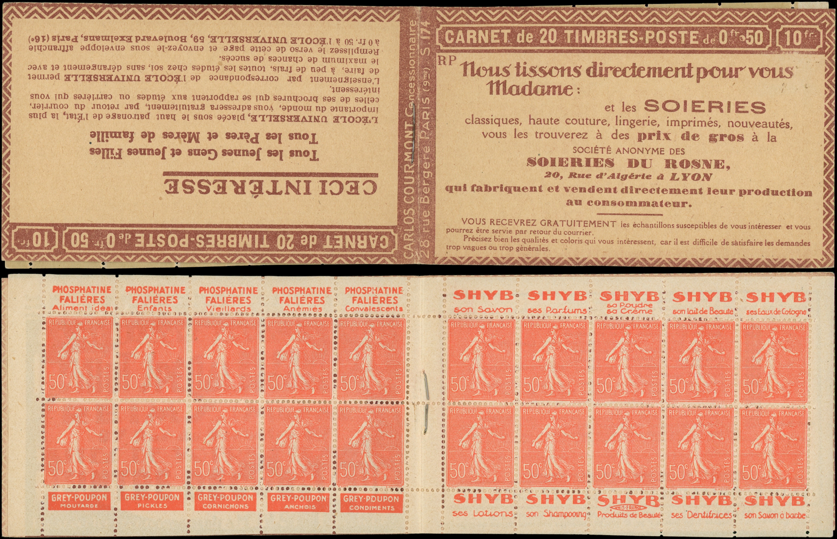 8864 199 image199-C27 Semeuse Lignée, 50c. rouge, n°199e, T IIB, S. 192-E, SPA STRASBOURG, feuillet de gauche au Type IV, TTB (Image)