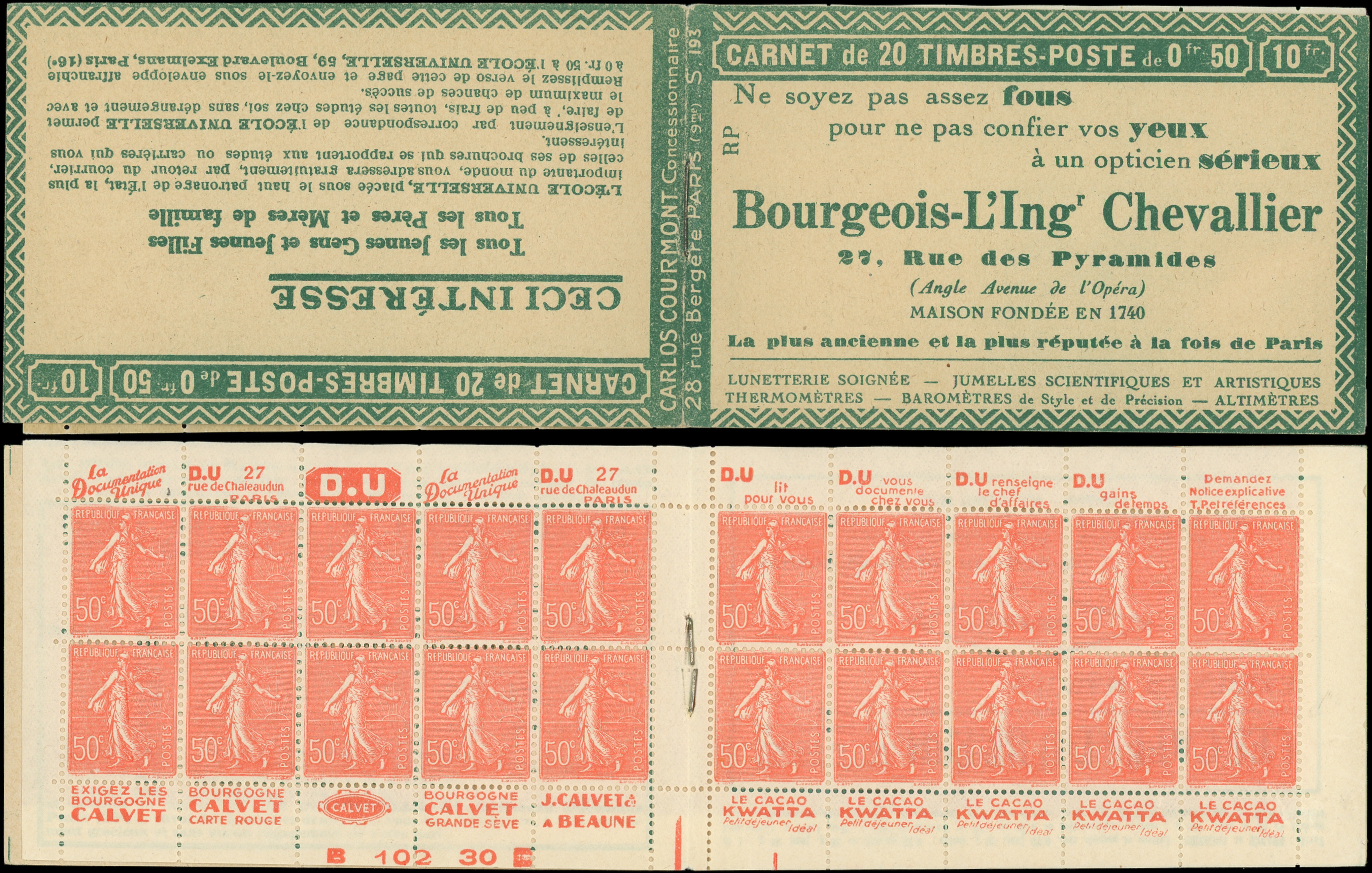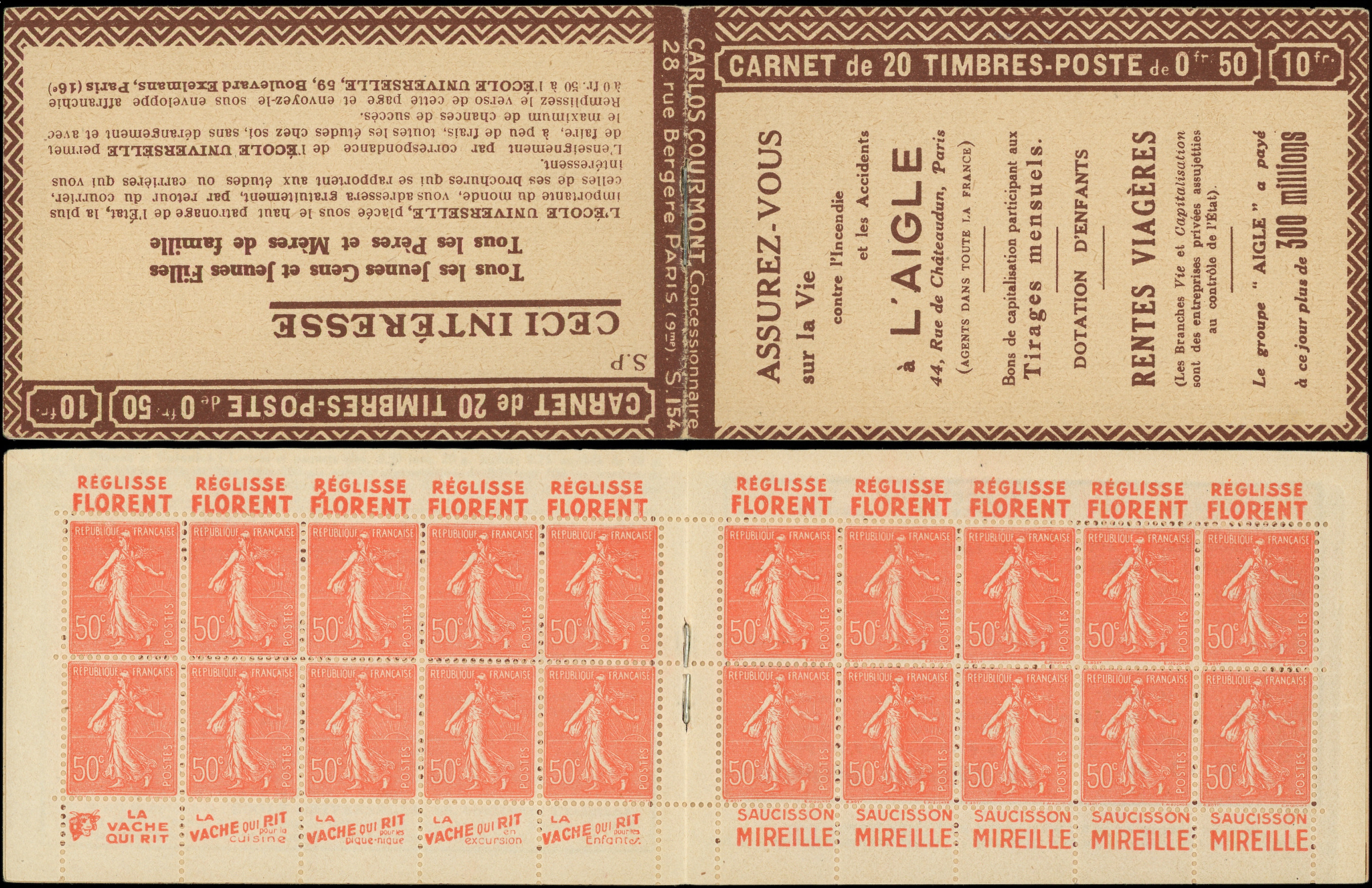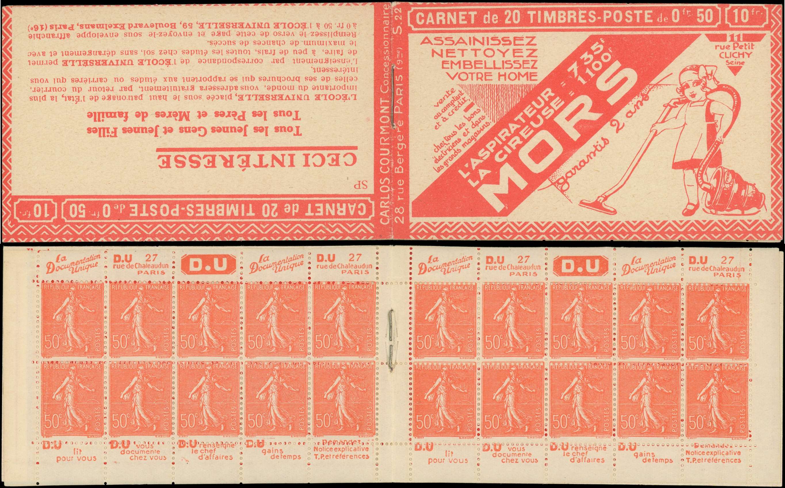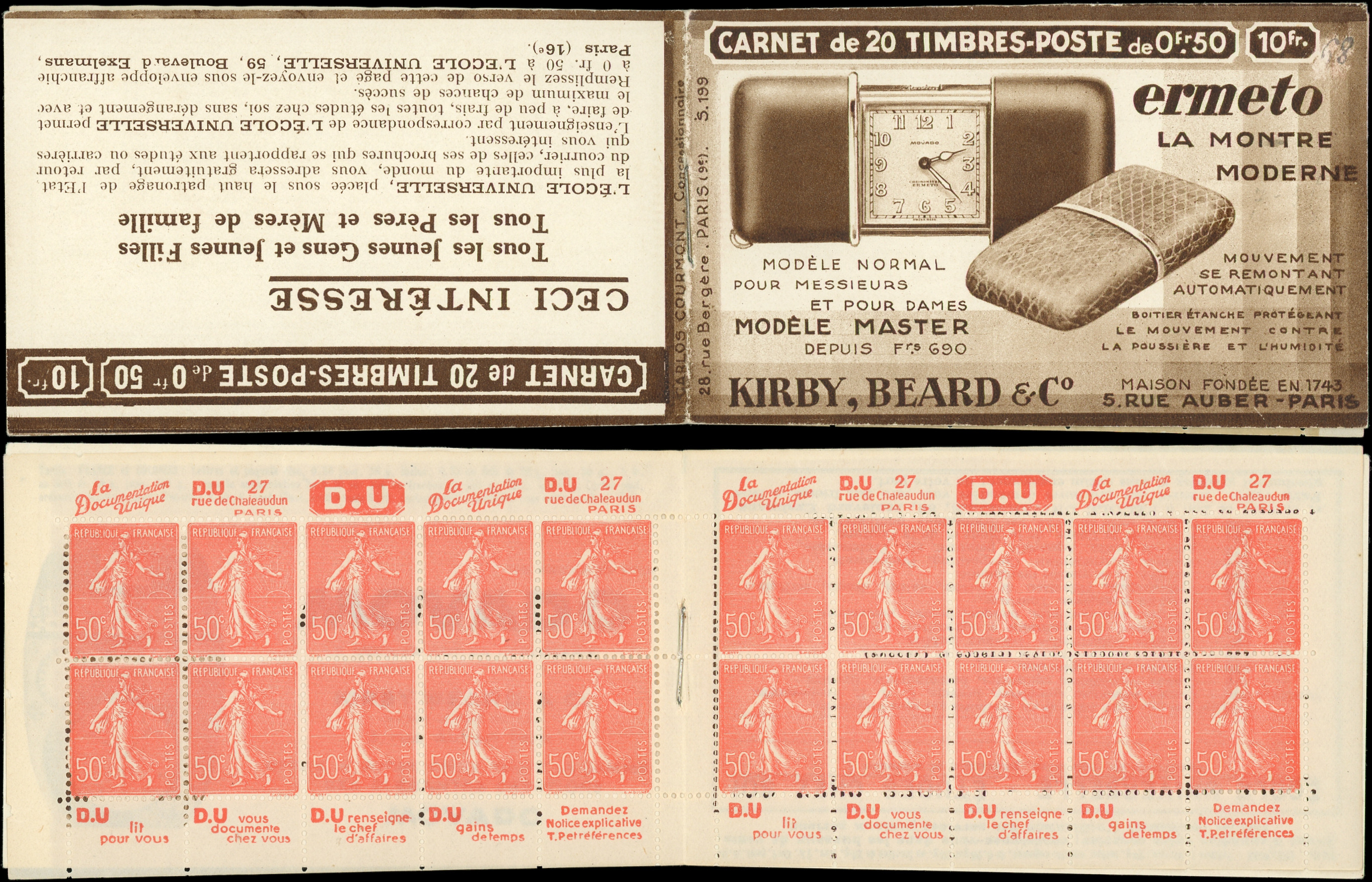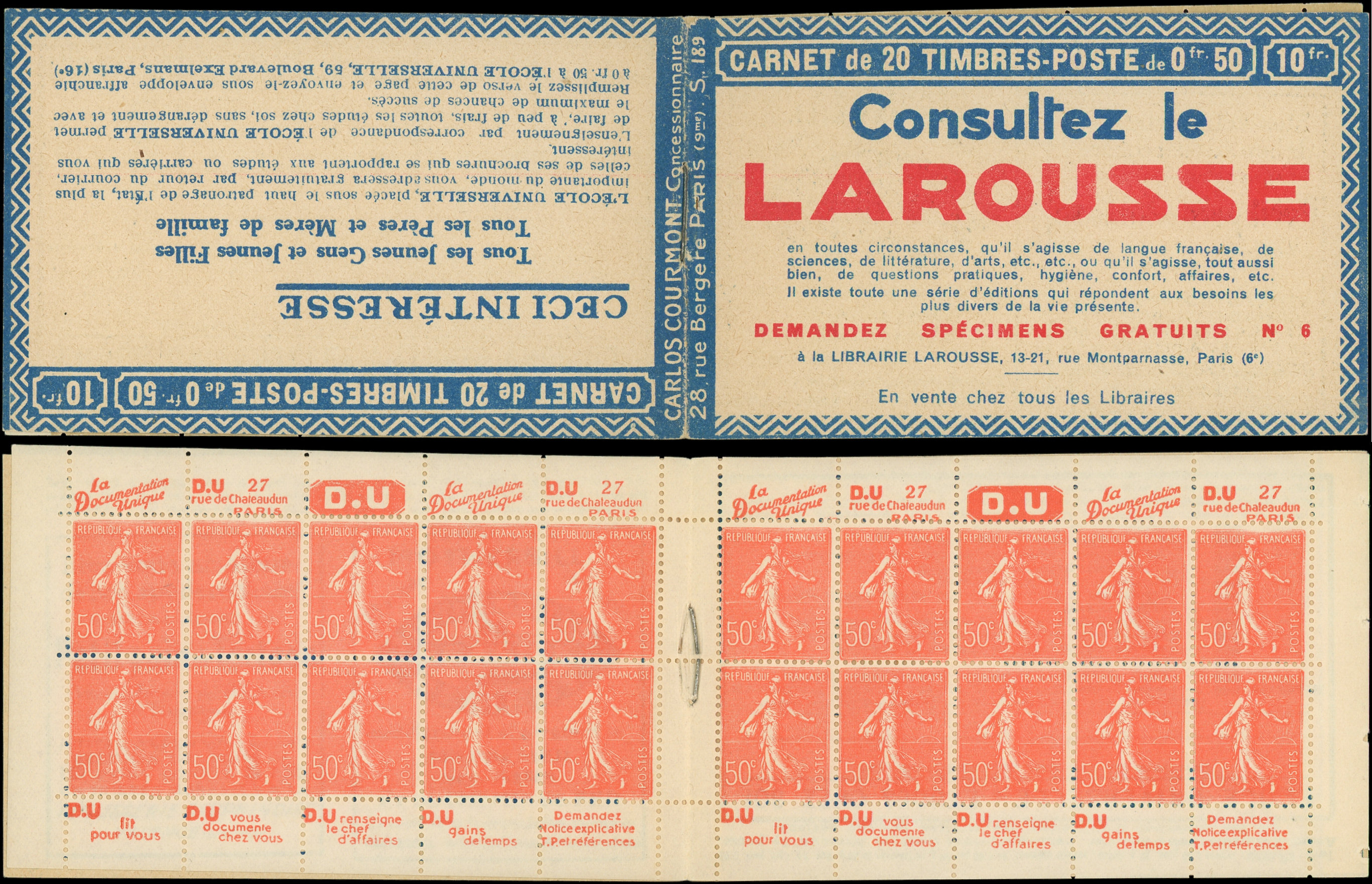 8864 199 image199-C27 Semeuse Lignée, 50c. rouge, n°199e, T IIB, S. 192-E, SPA STRASBOURG, feuillet de gauche au Type IV, TTB (Image)