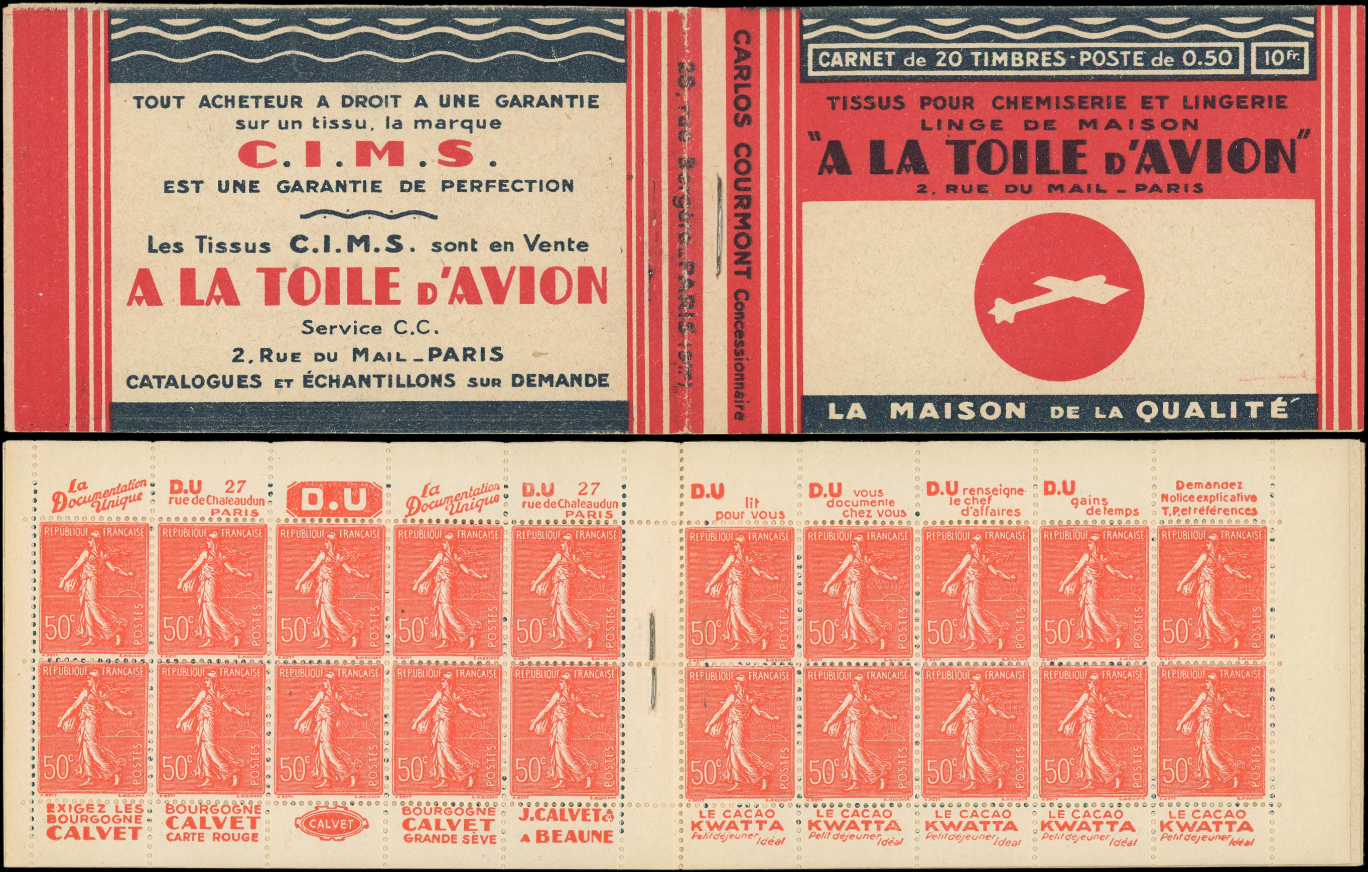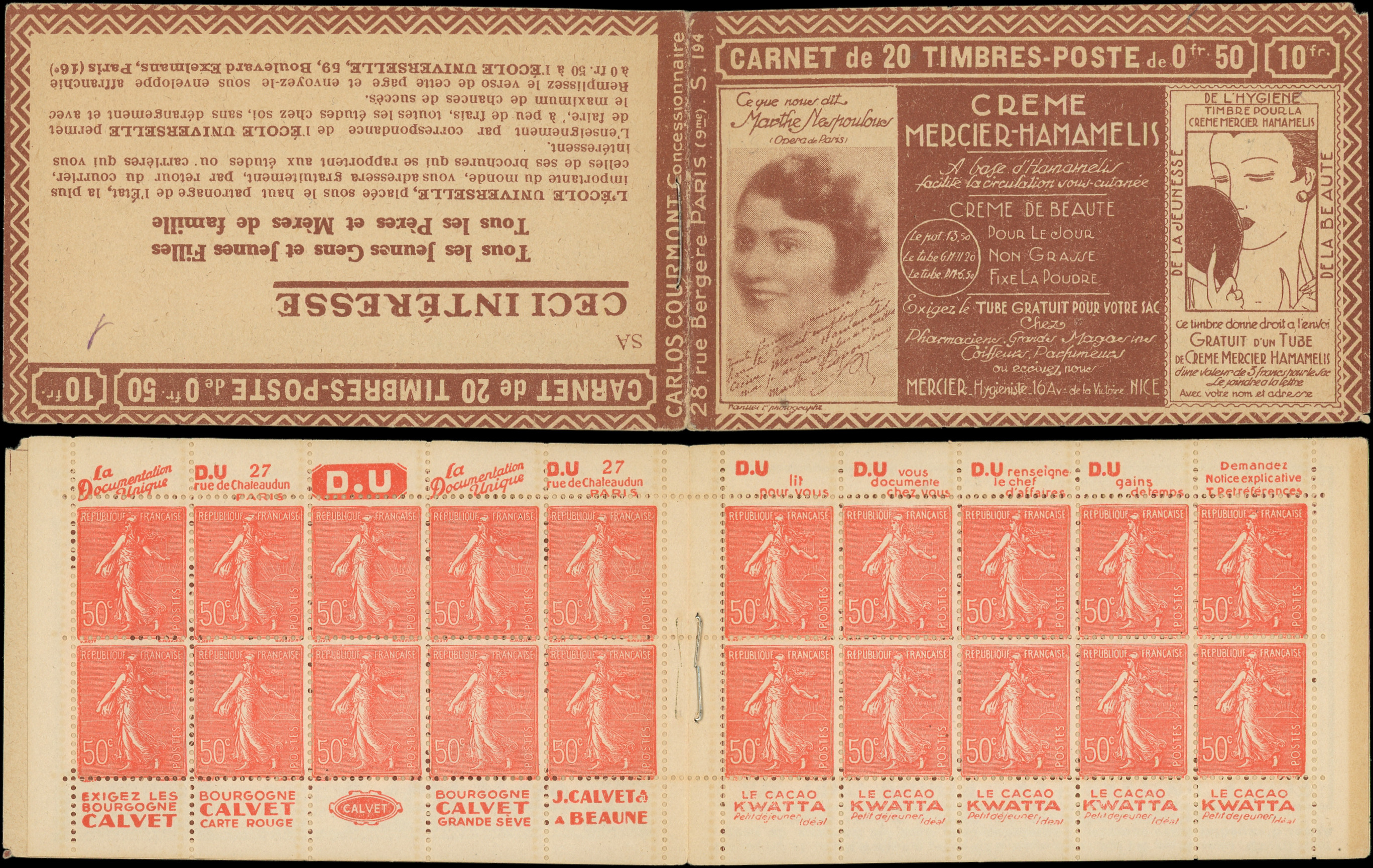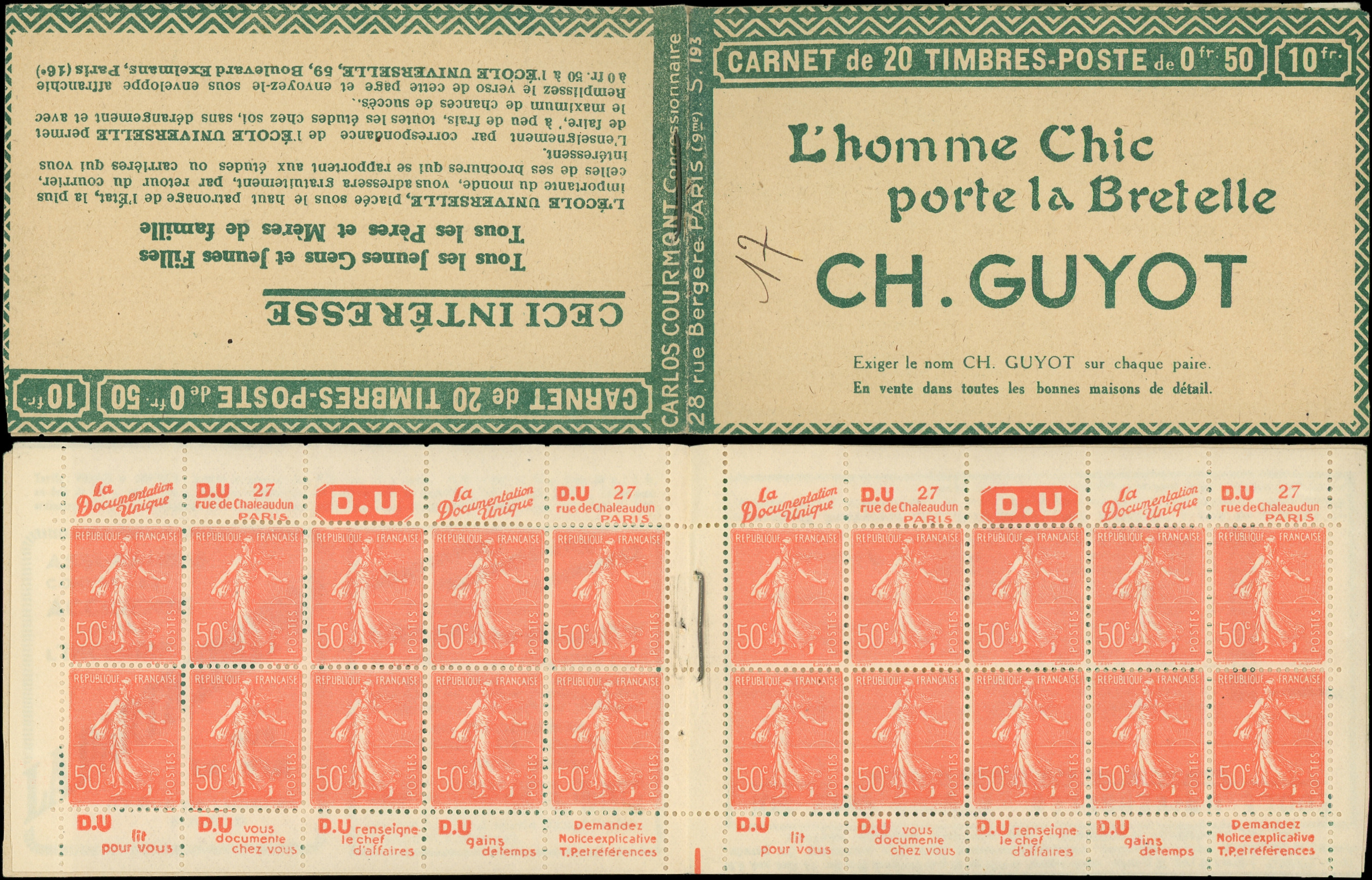 8865 199 image199-C27 Semeuse Lignée, 50c. rouge, n°199e, T IIB, S. 194-SA, MERCIER HAMAMELIS, stylo en C4 sinon TB, RR (Image)