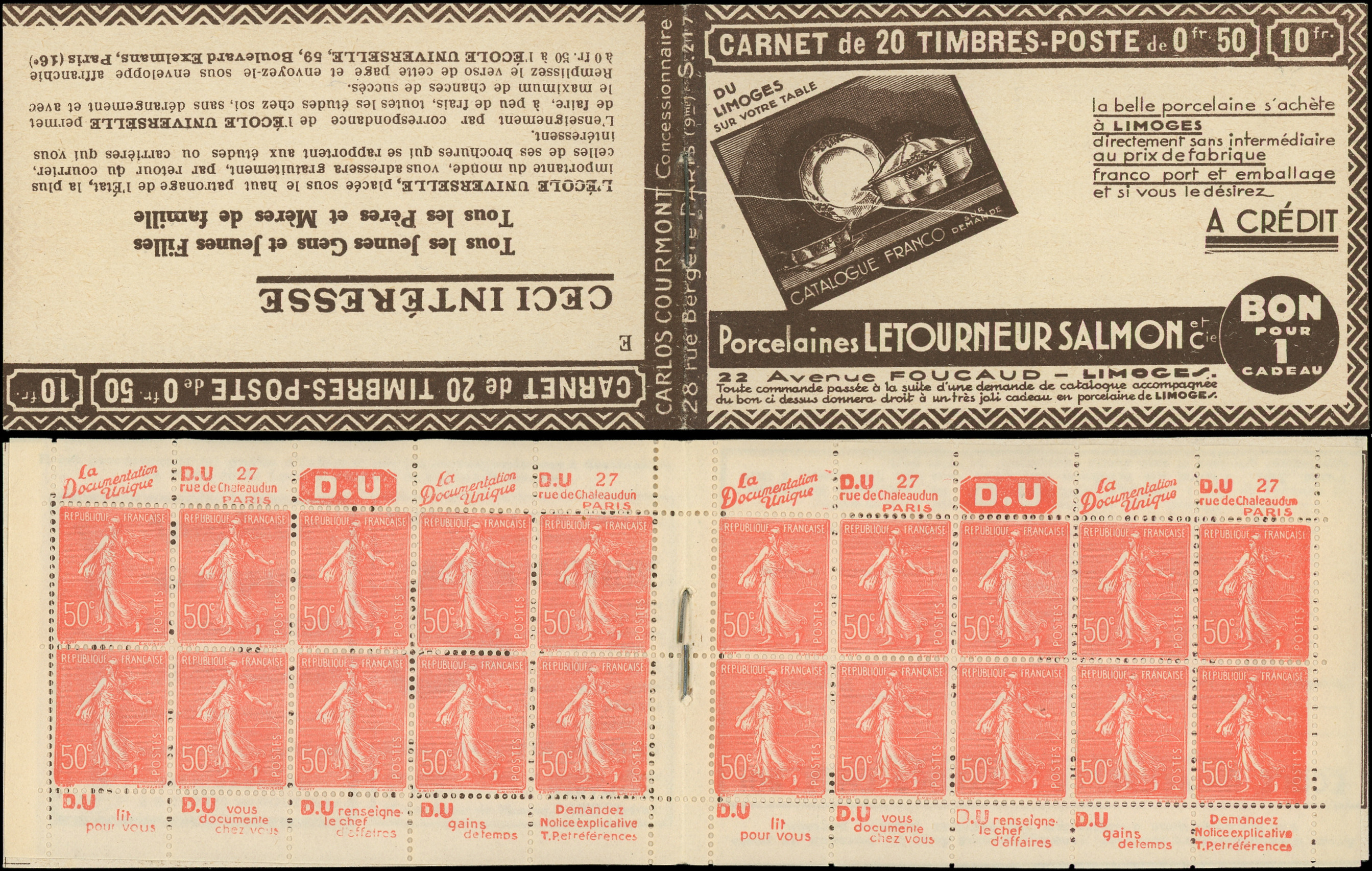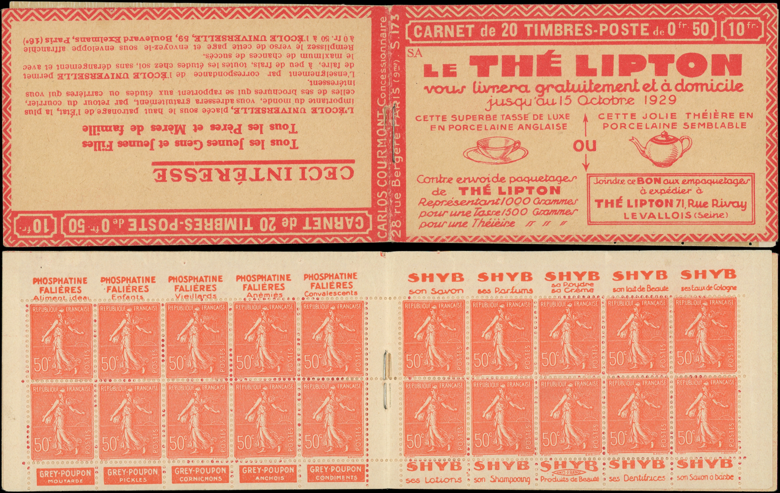 8868 199 image199-C29 Semeuse Lignée, 50c. rouge, n°199e, T IIB, S. 173-SA, LIPTON, haut de feuille, TB (Image)