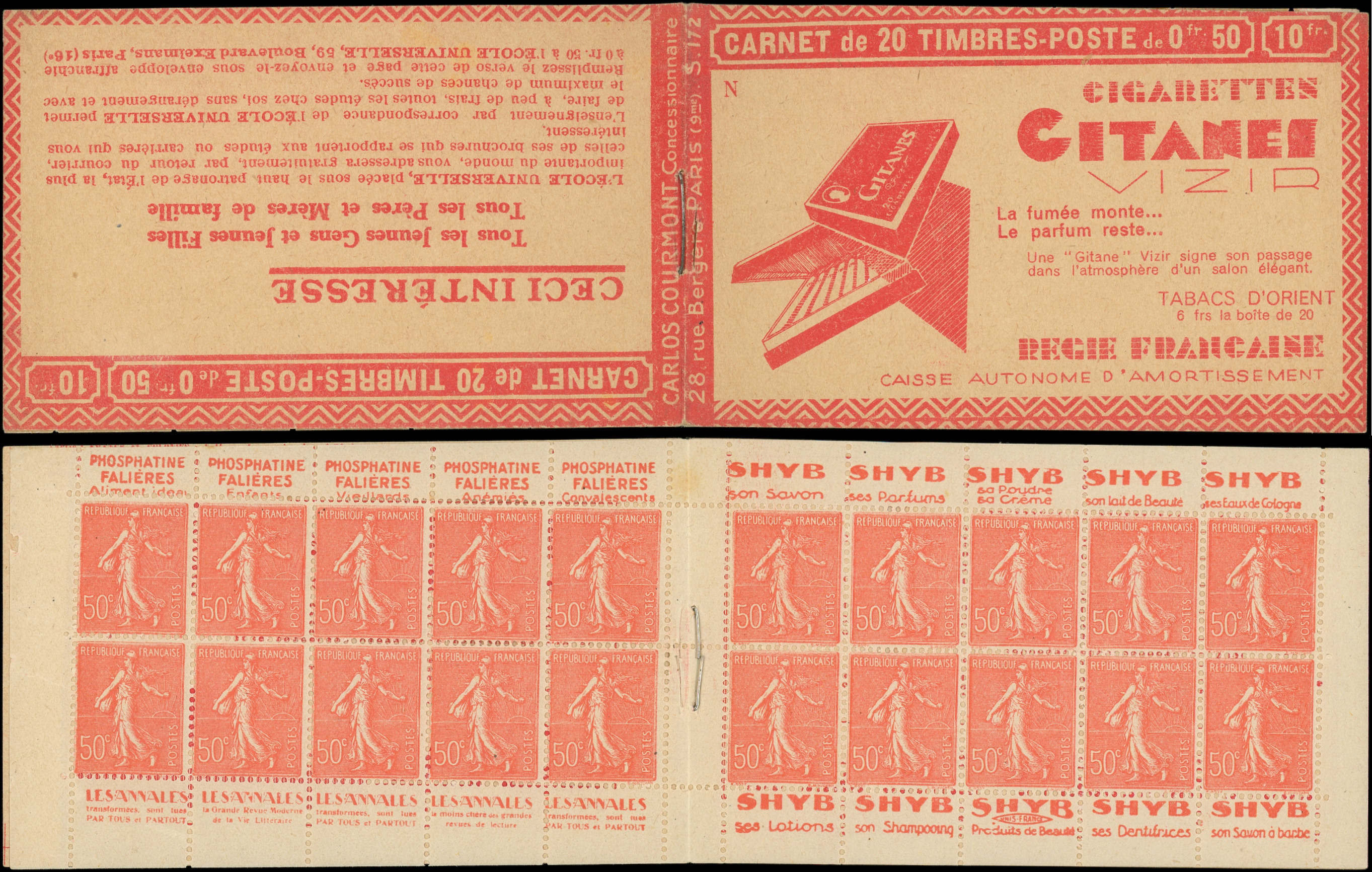 8866 199 image199-C28 Semeuse Lignée, 50c. rouge, n°199e, T IIB, S. 172-N, GITANES VIZIR, TTB (Image)