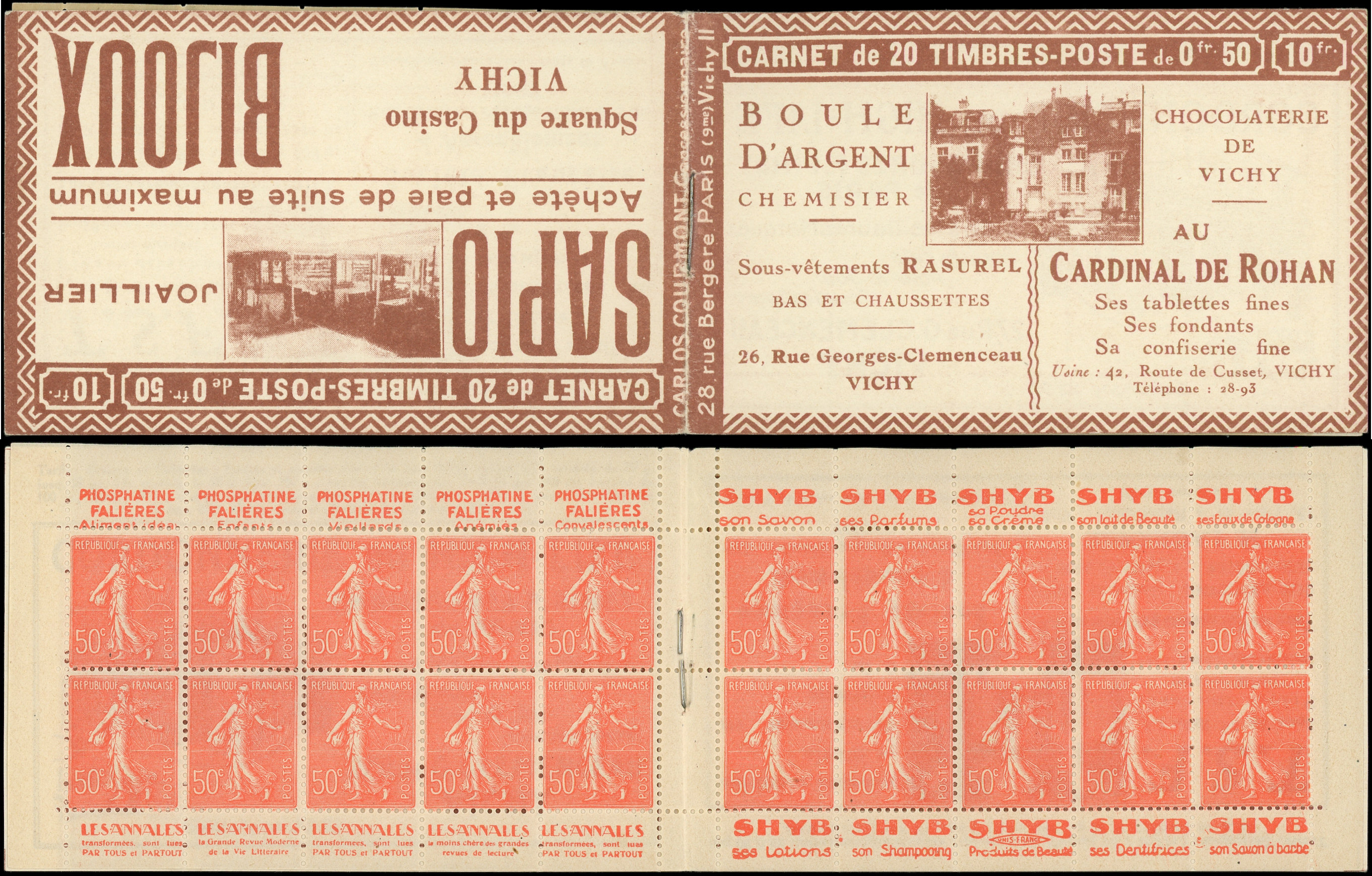 8867 199 image199-C28 Semeuse Lignée, 50c. rouge, n°199e, T IIB, S. Vichy II, CARDINAL DE ROHAN/BIJOUX SAPIO, TTB (Image)