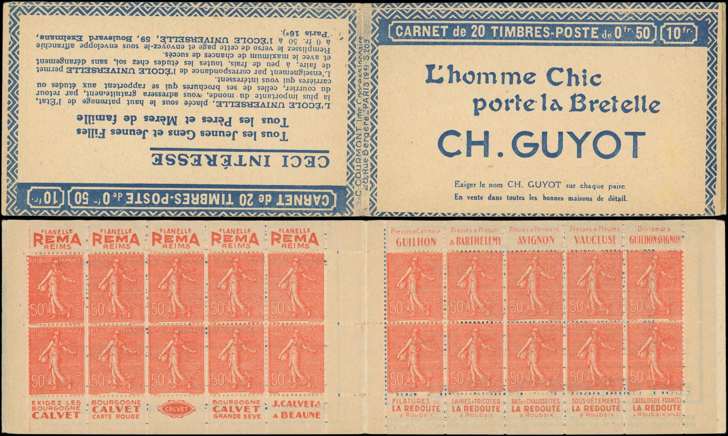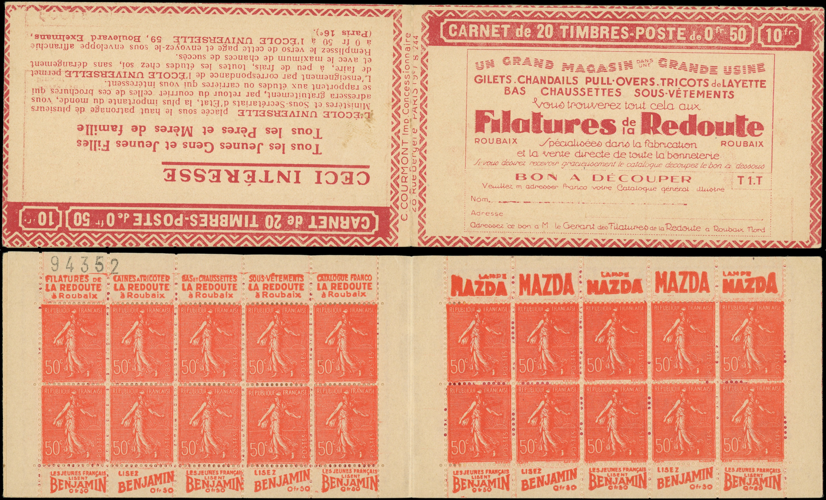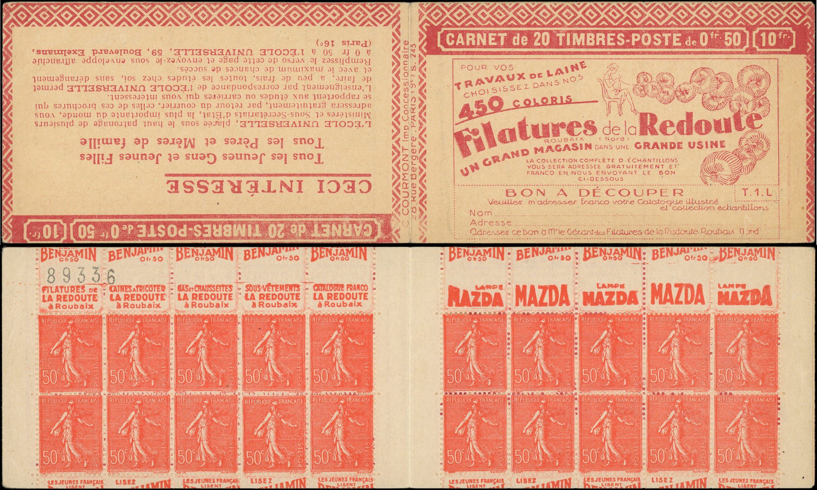 8941 199 image199-C60 Semeuse Lignée, 50c. rouge, n°199j, T IV, S. 245, LA REDOUTE, n°89336, DOUBLES PUBS en haut, RRR, TTB (Image)