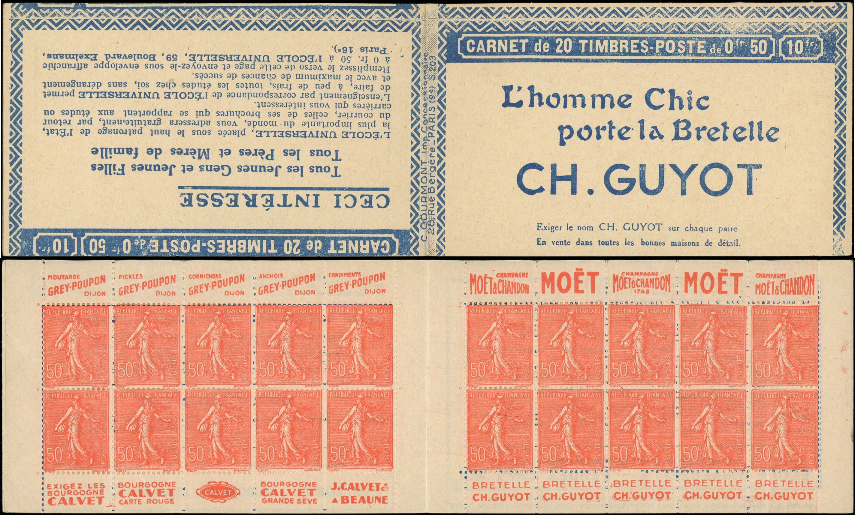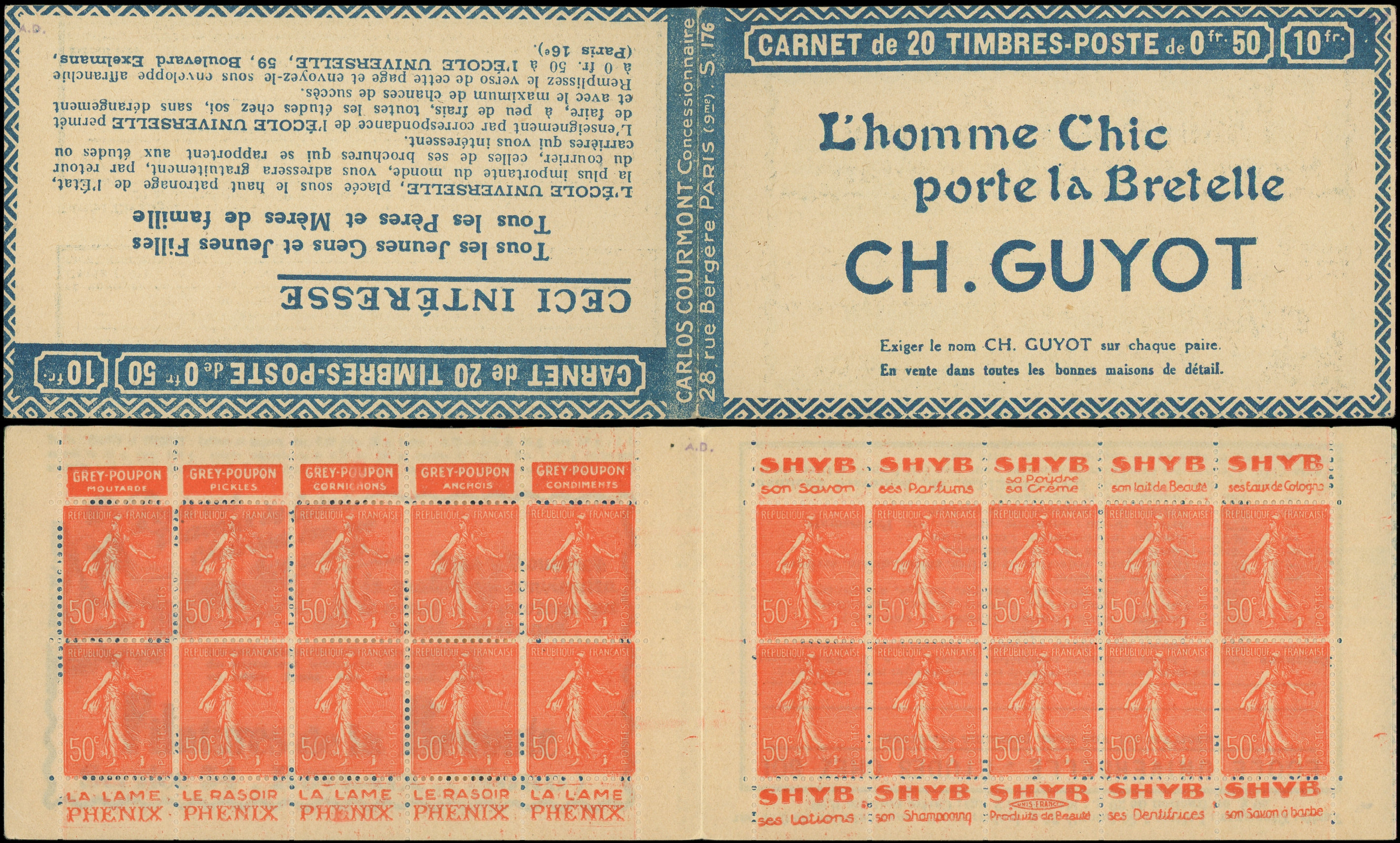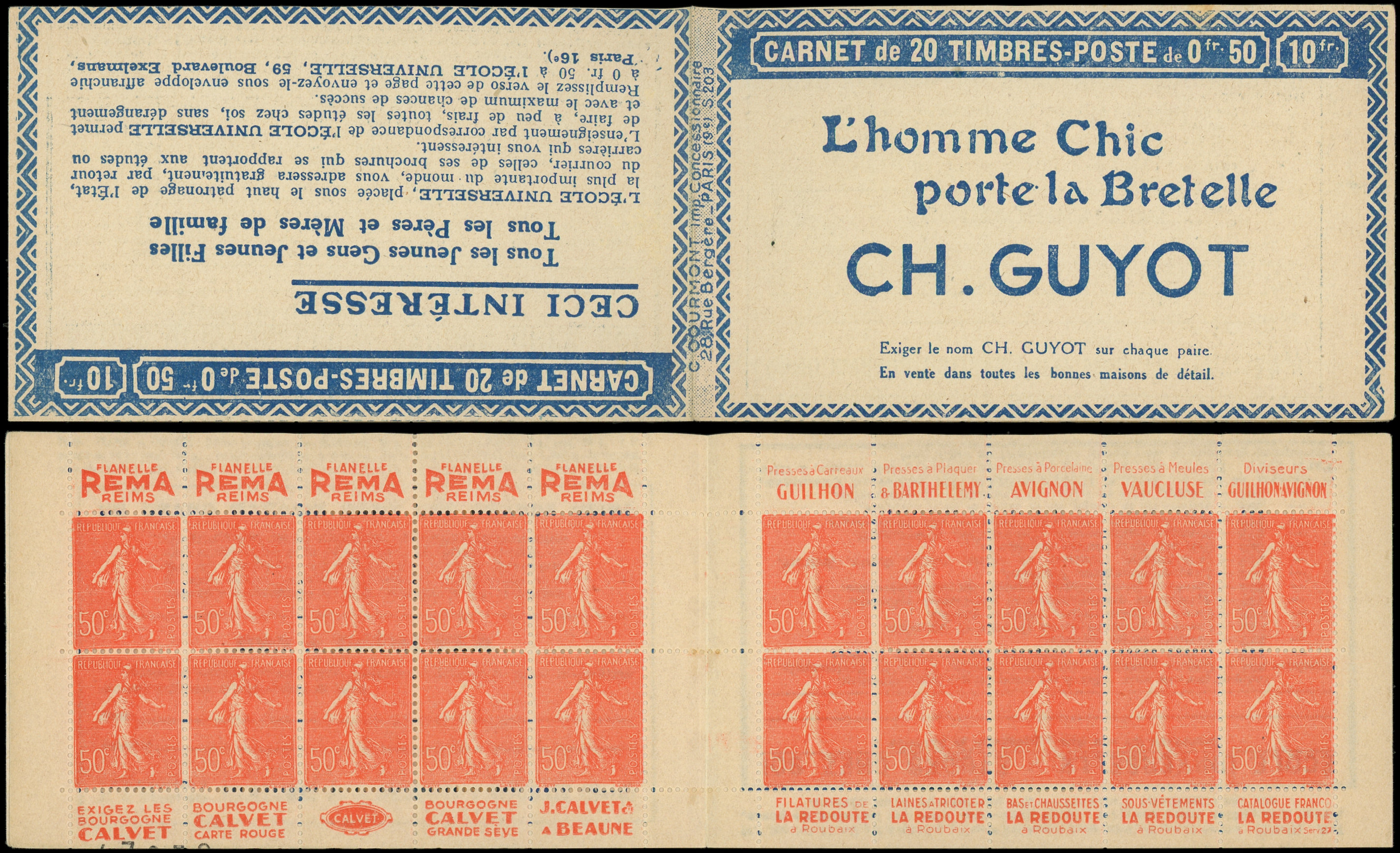 8941 199 image199-C60 Semeuse Lignée, 50c. rouge, n°199j, T IV, S. 245, LA REDOUTE, n°89336, DOUBLES PUBS en haut, RRR, TTB (Image)