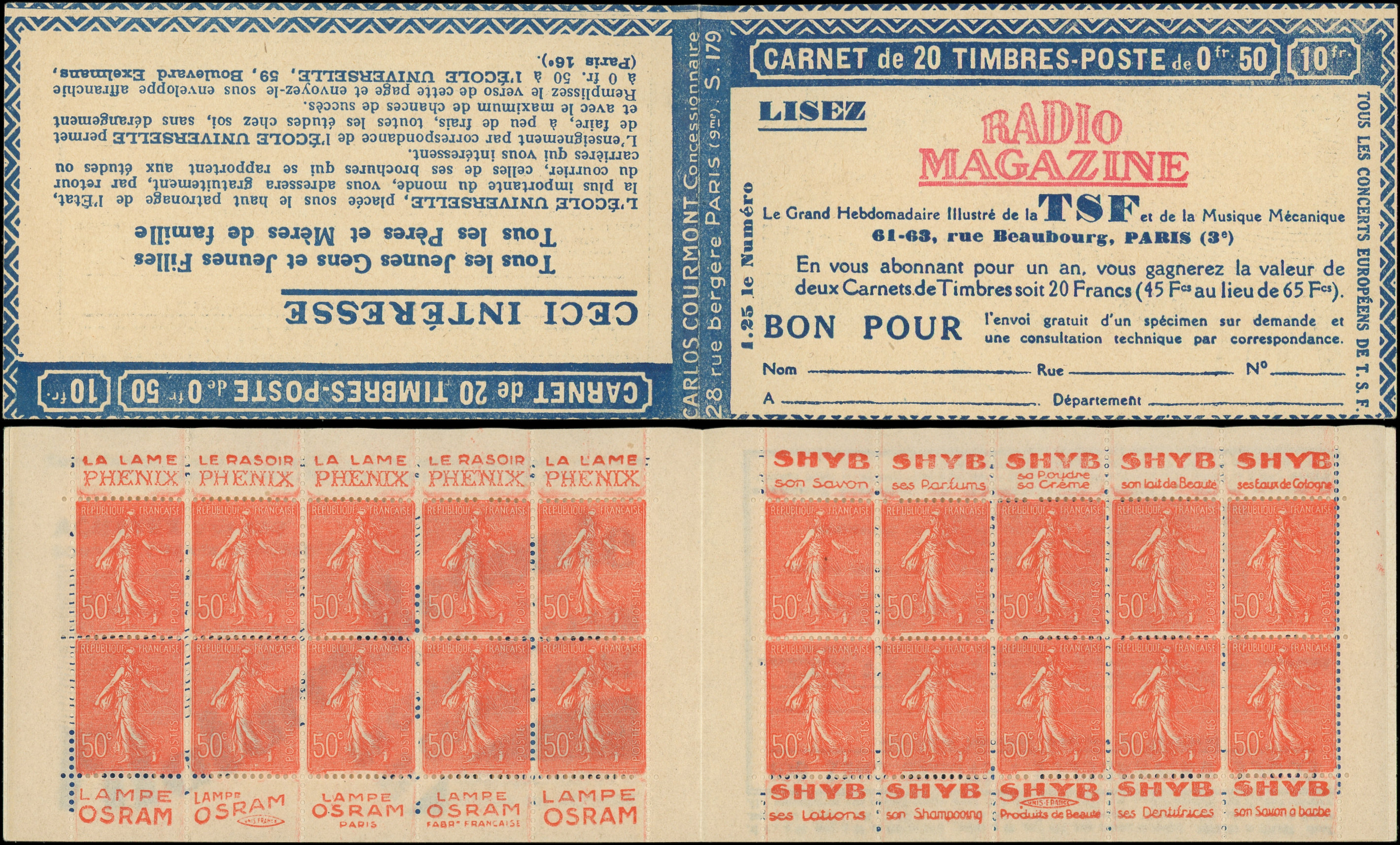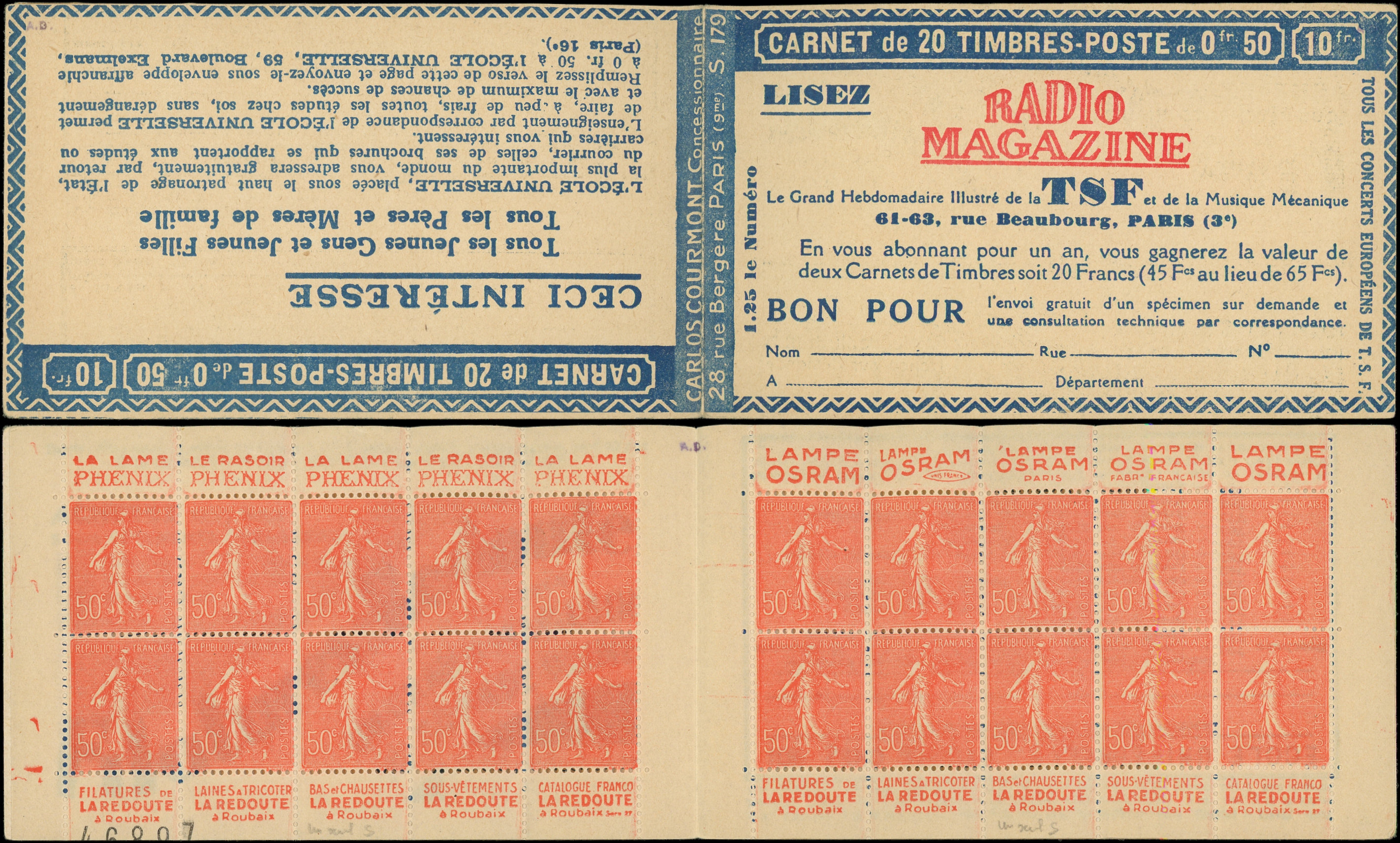 8938 199 image199-C58 Semeuse Lignée, 50c. rouge, n°199j, T IV, S. 179, RADIO MAGAZINE, 2 ex. adh., TB (Image)