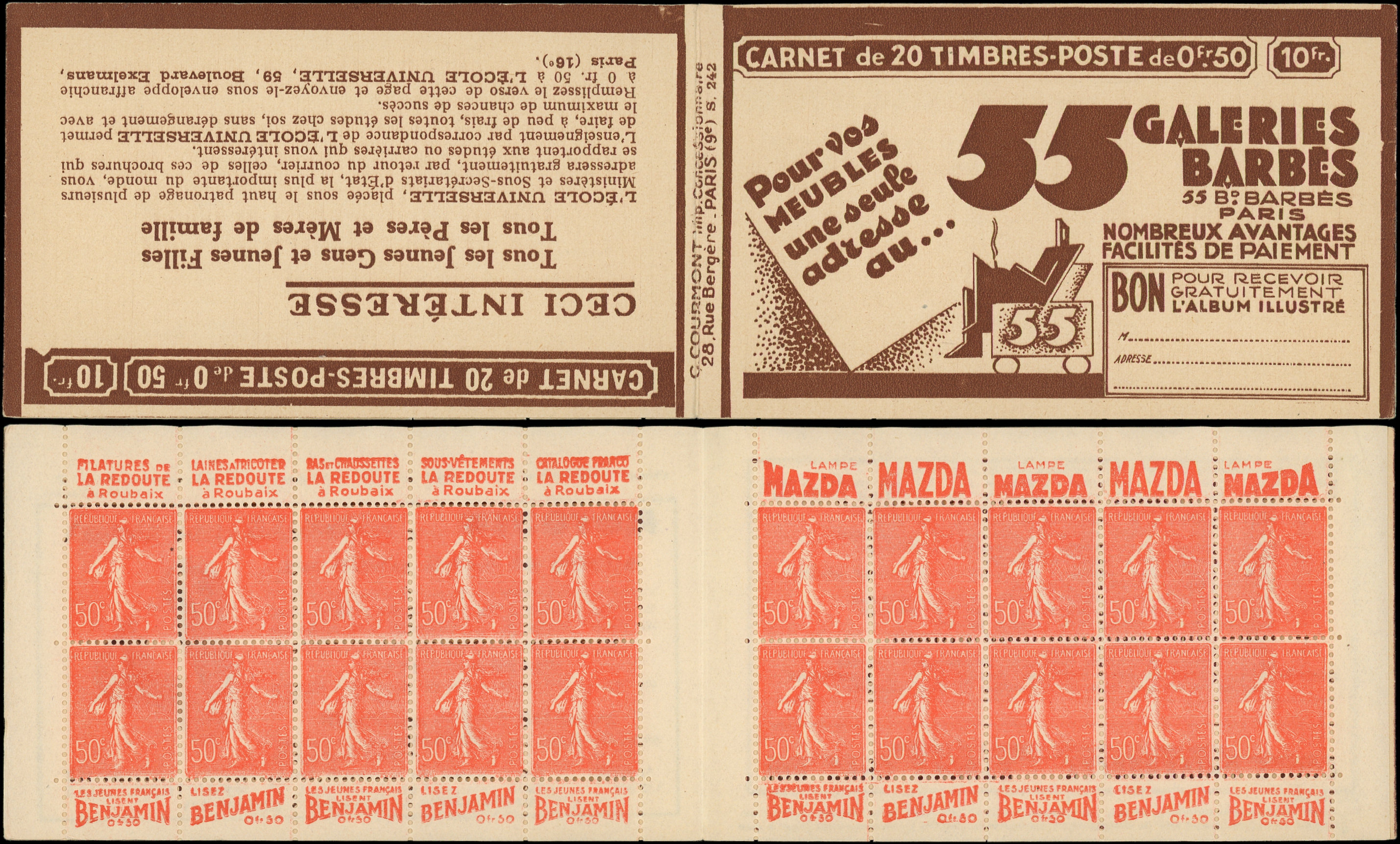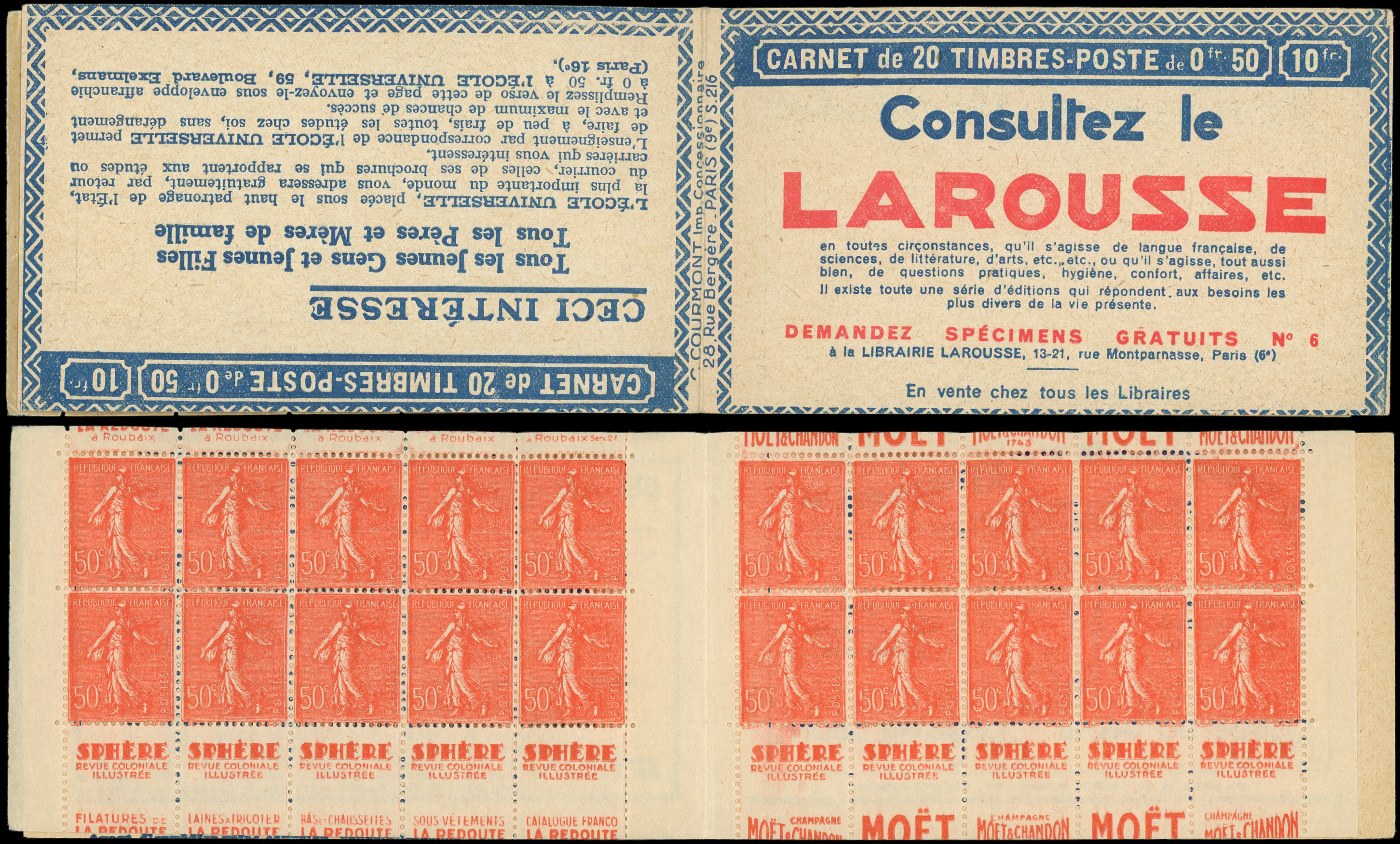 8943 199 image199-C61 Semeuse Lignée, 50c. rouge, n°199j, T IV, S. 216, LAROUSSE, DOUBLES PUBS en bas, TB (Image)