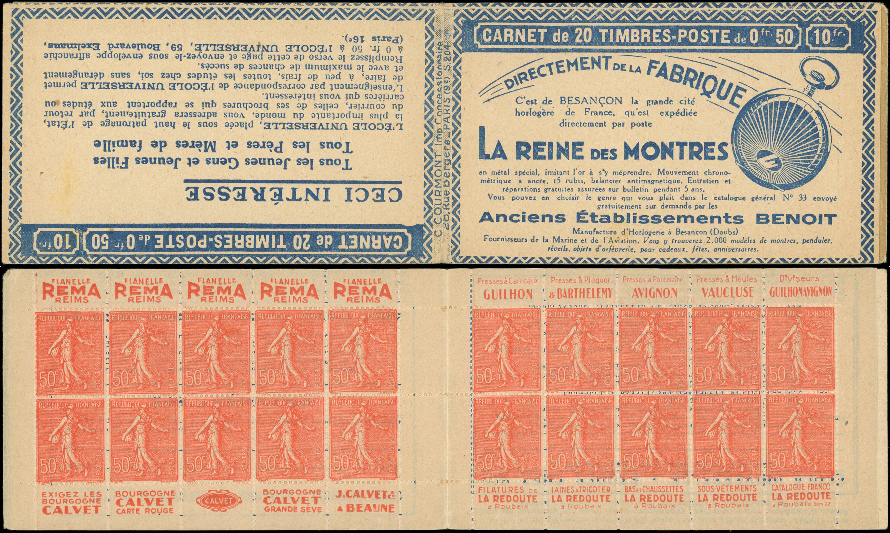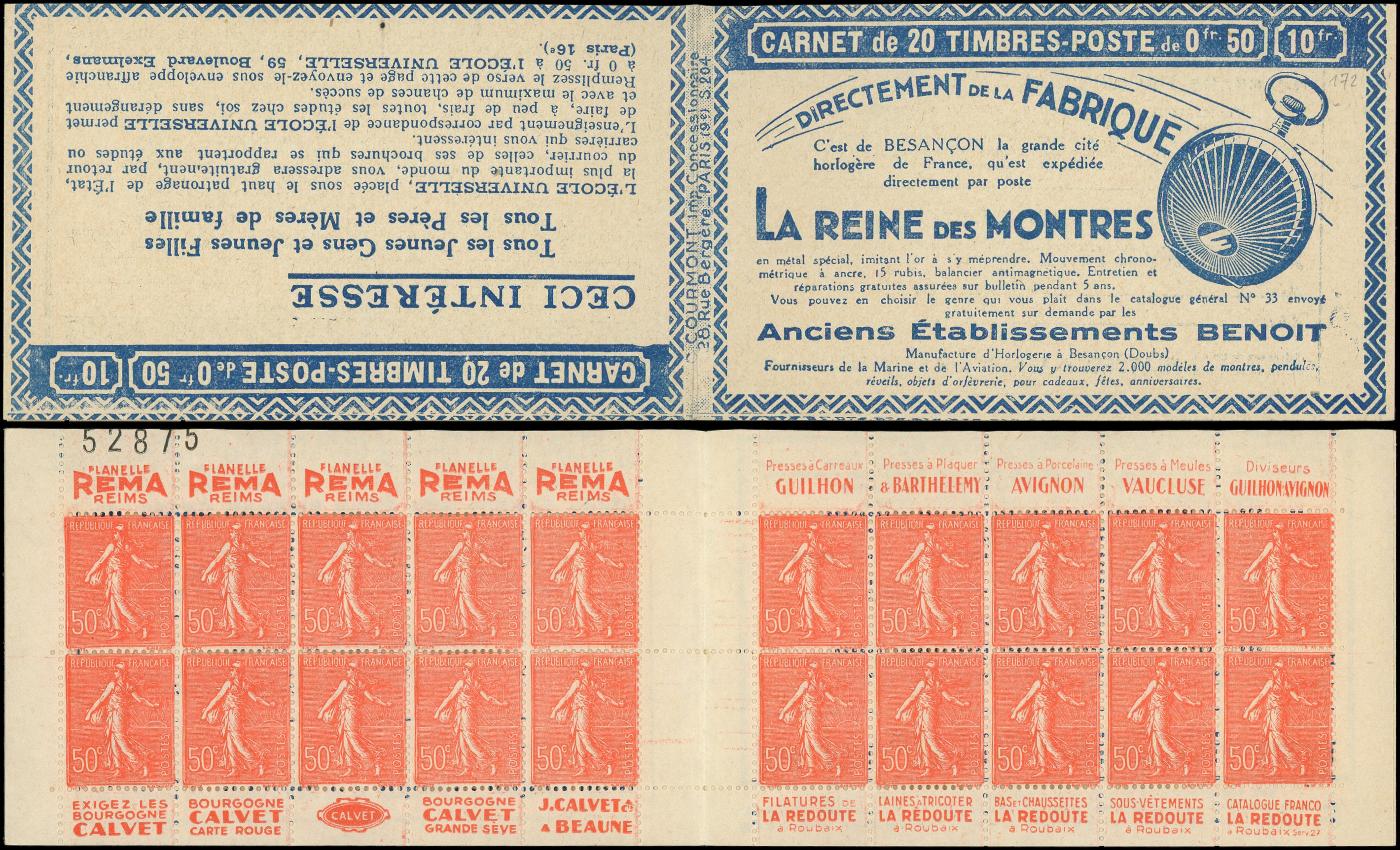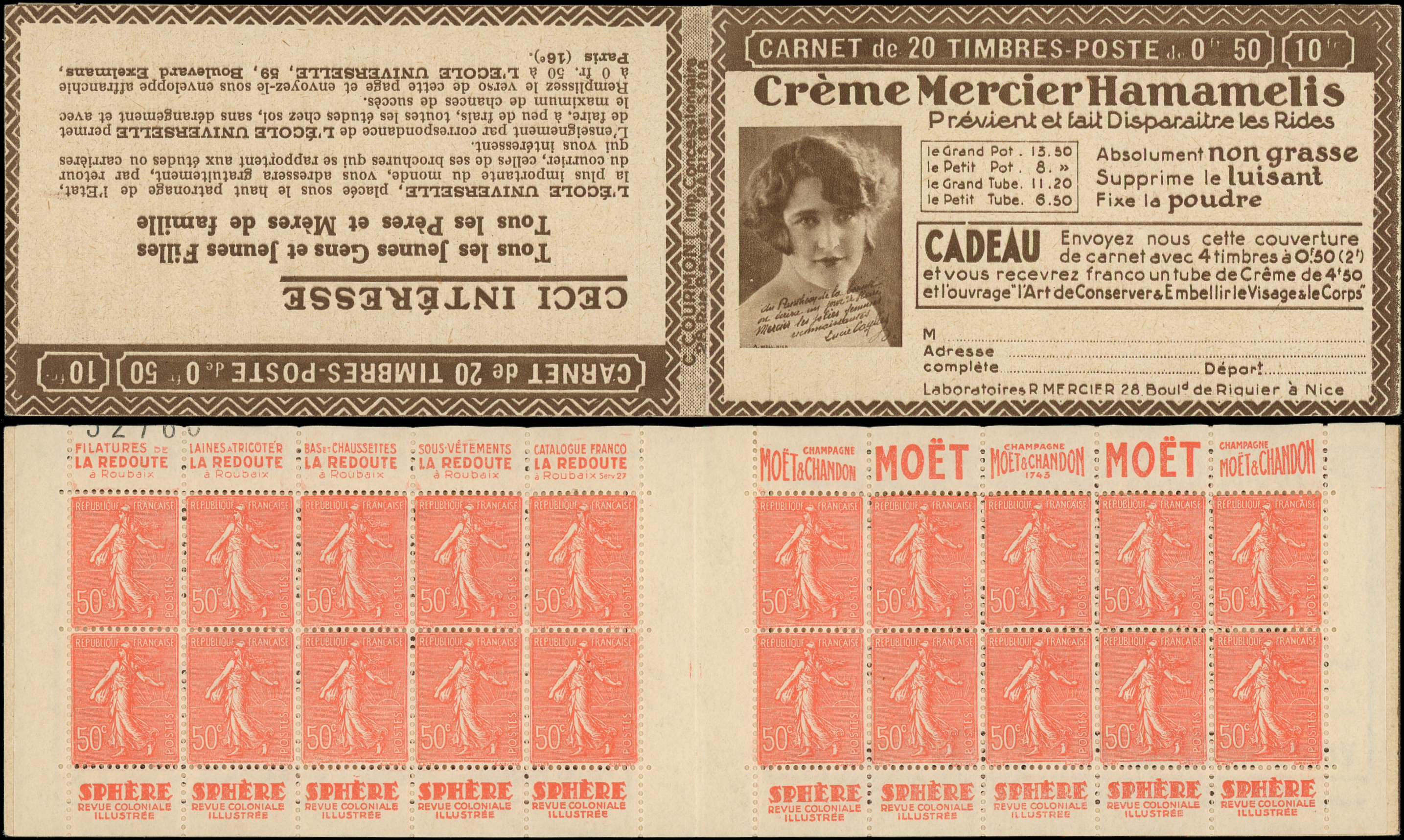 8947 199 image199-C64 Semeuse Lignée, 50c. rouge, n°199j, T IV, S. 204, REINE DES MONTRES, pont perforé, très légères taches s. couv. sinon TB, RR (Image)