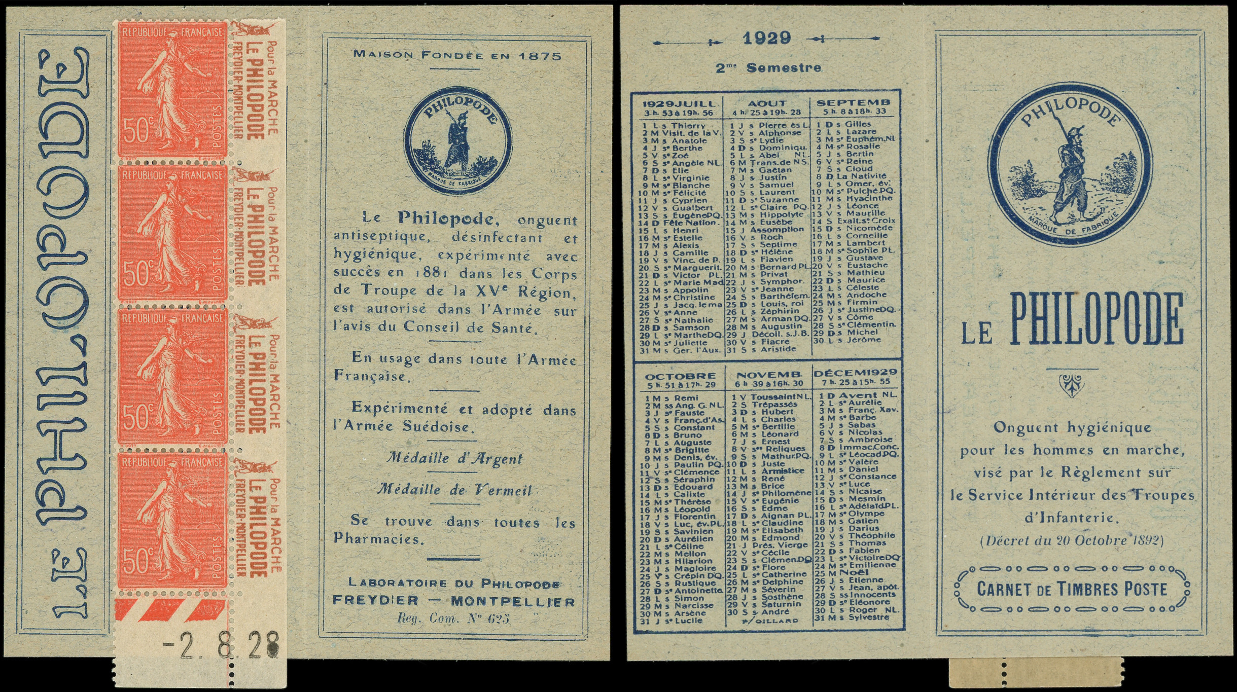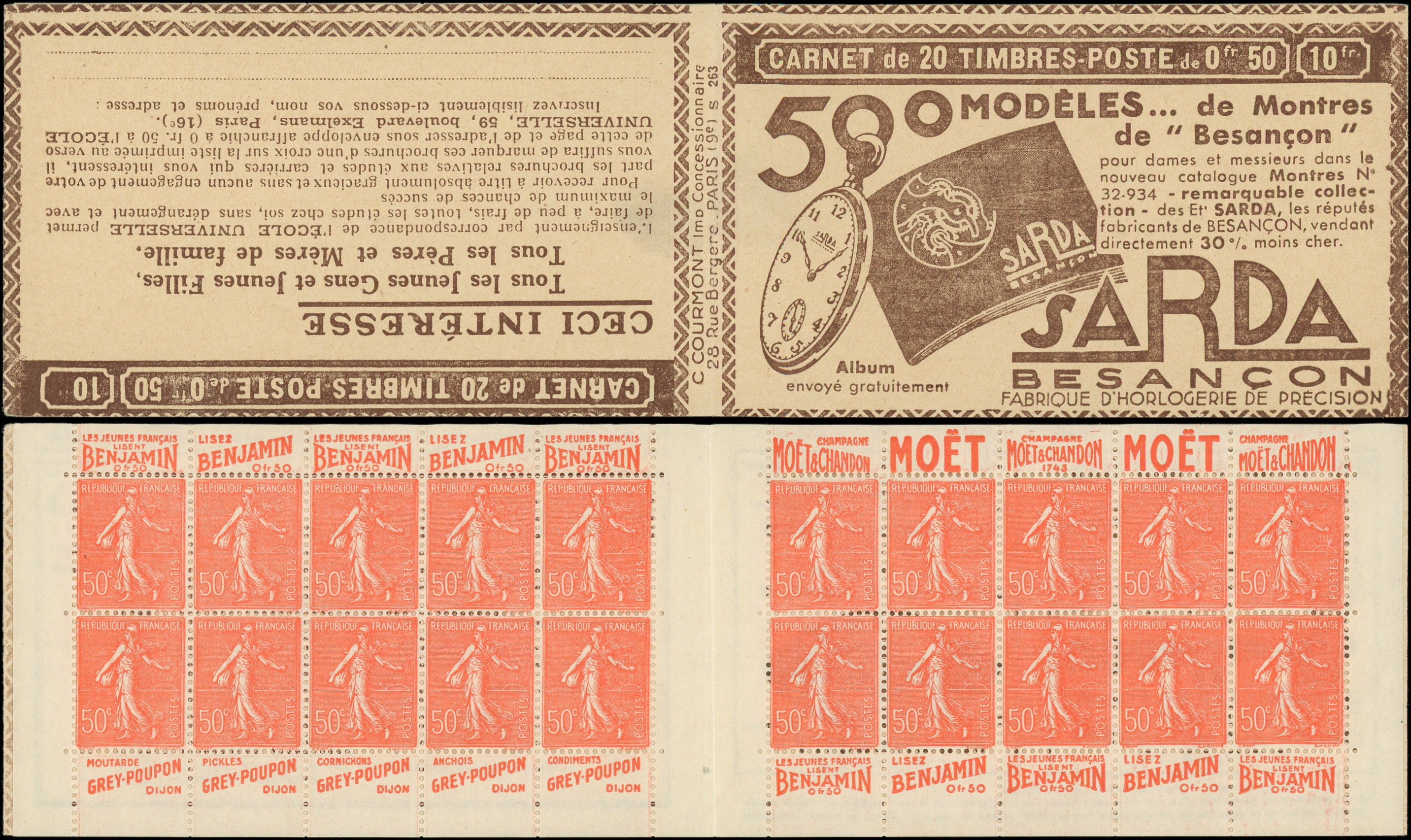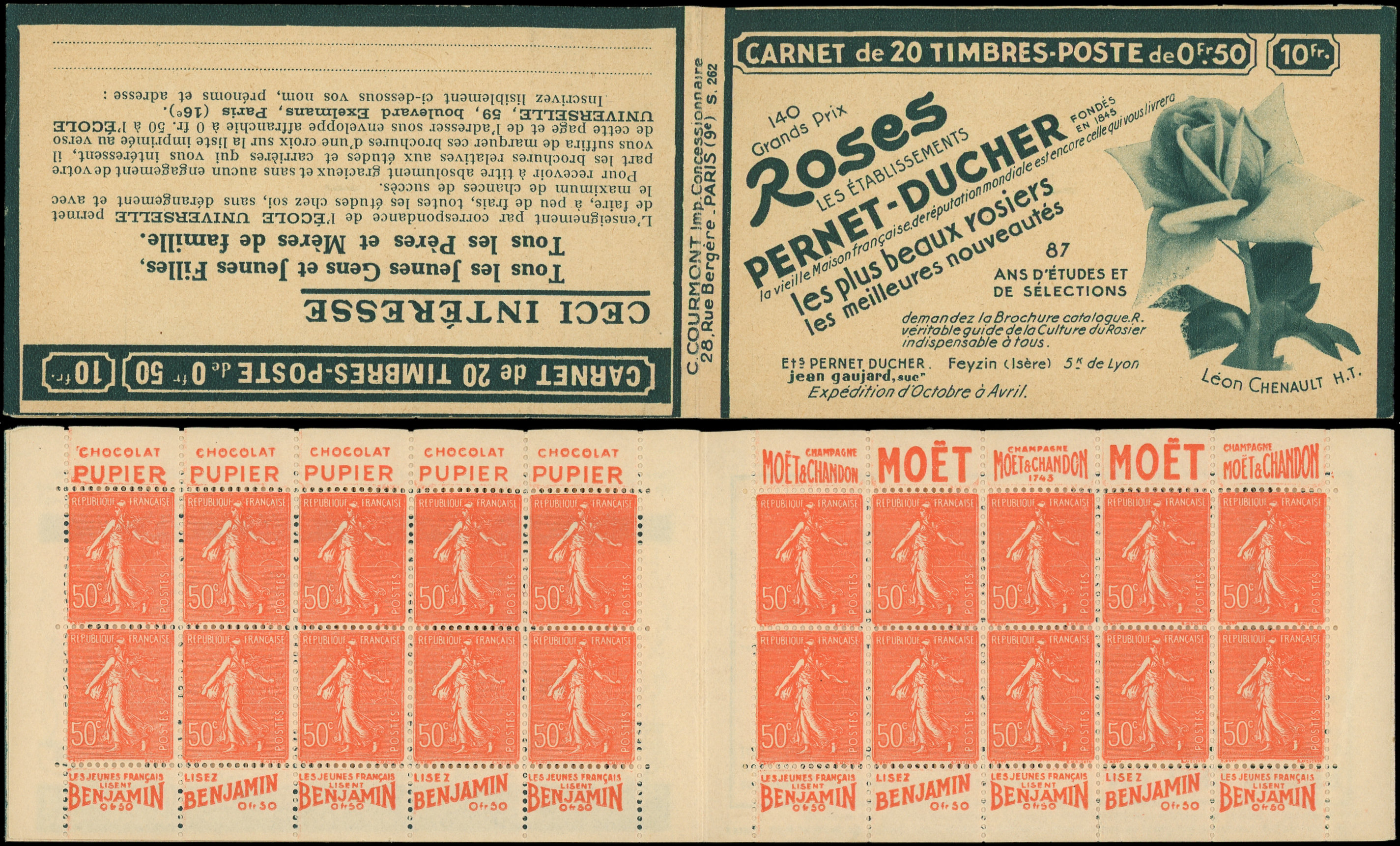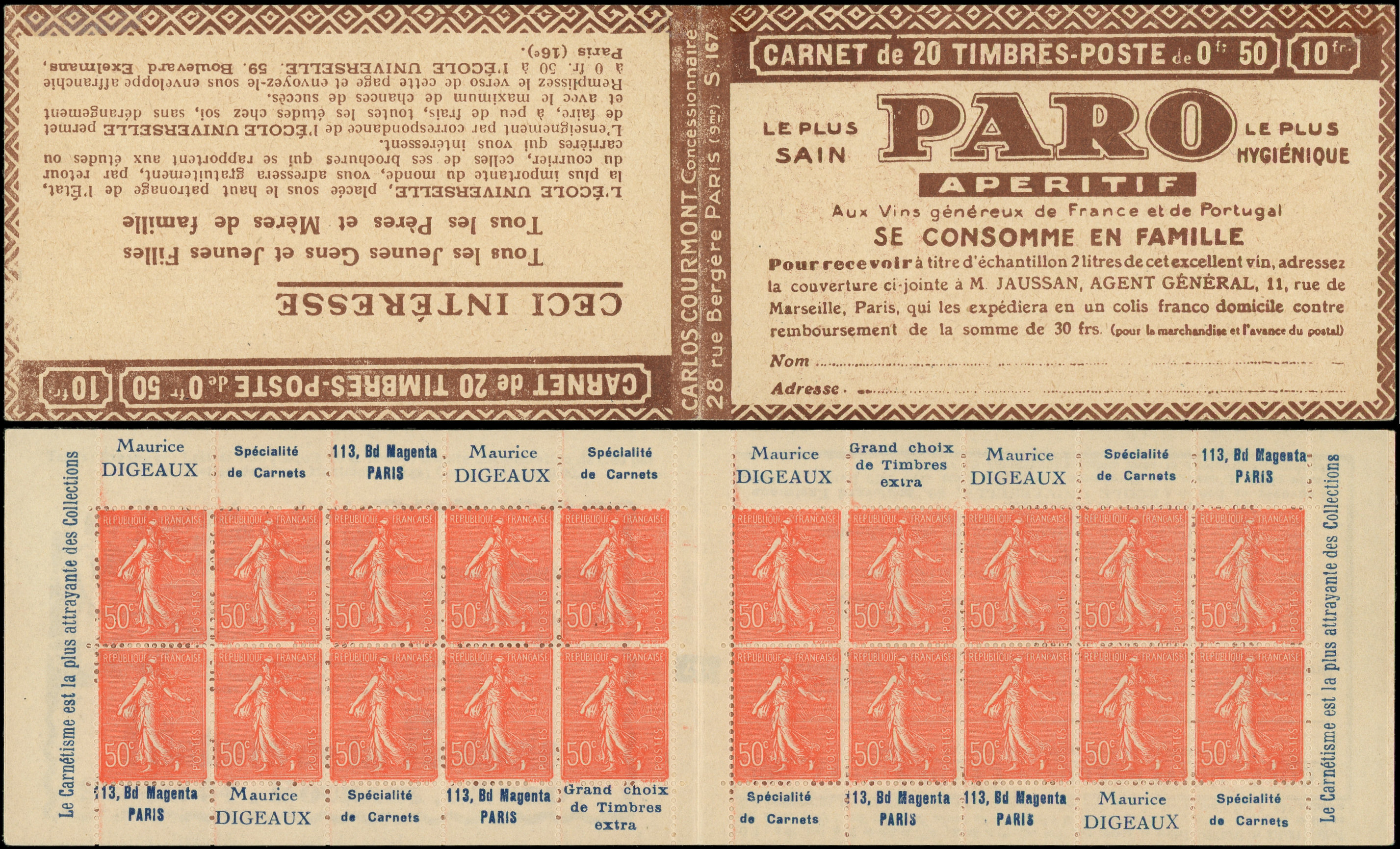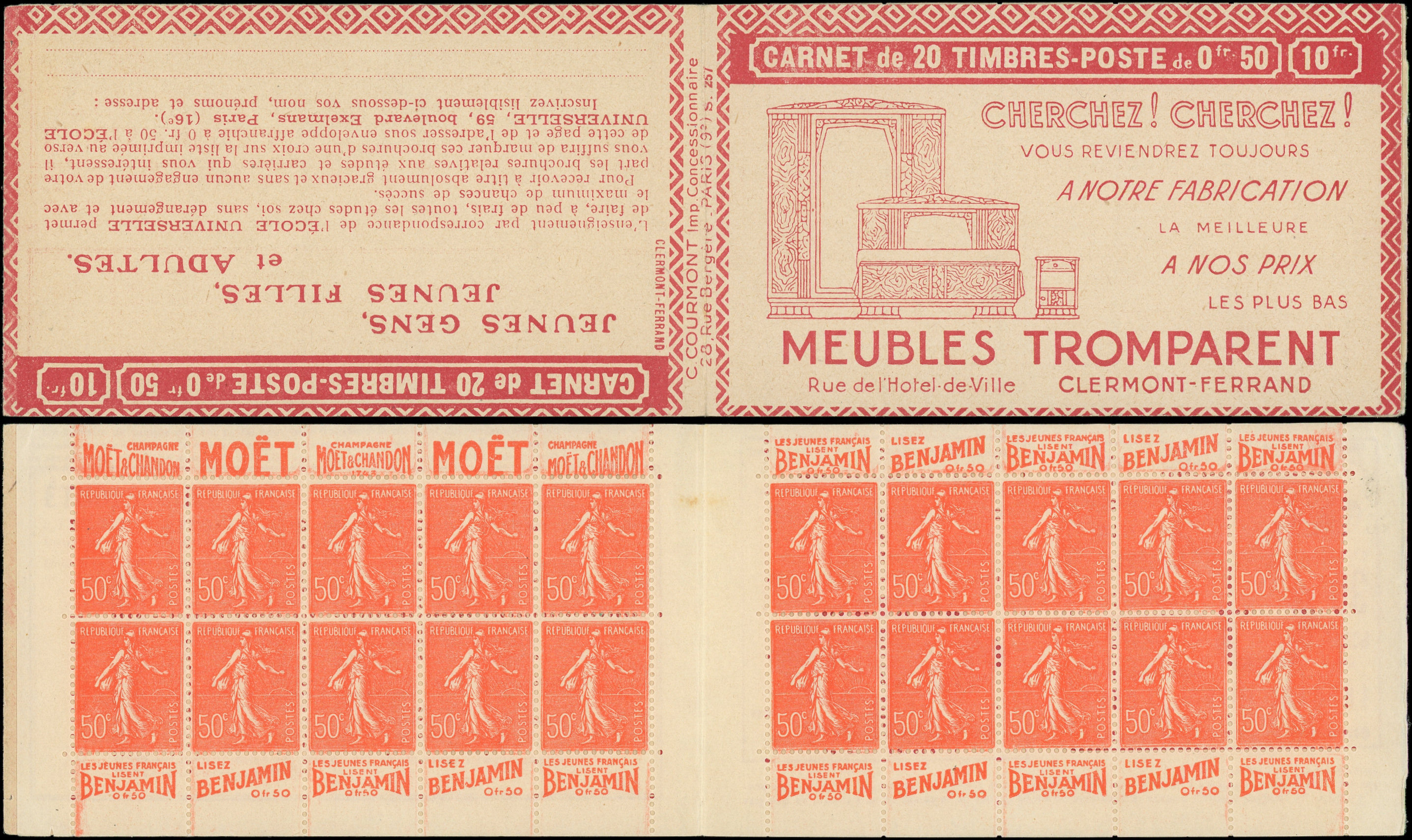 8957 199 image199-C71 Semeuse Lignée, 50c. rouge, n°199a, T IIA, S. 250, MAIZENA, adh. de couv. et amorce de découpe entre 2 ex., sinon TB (Image)