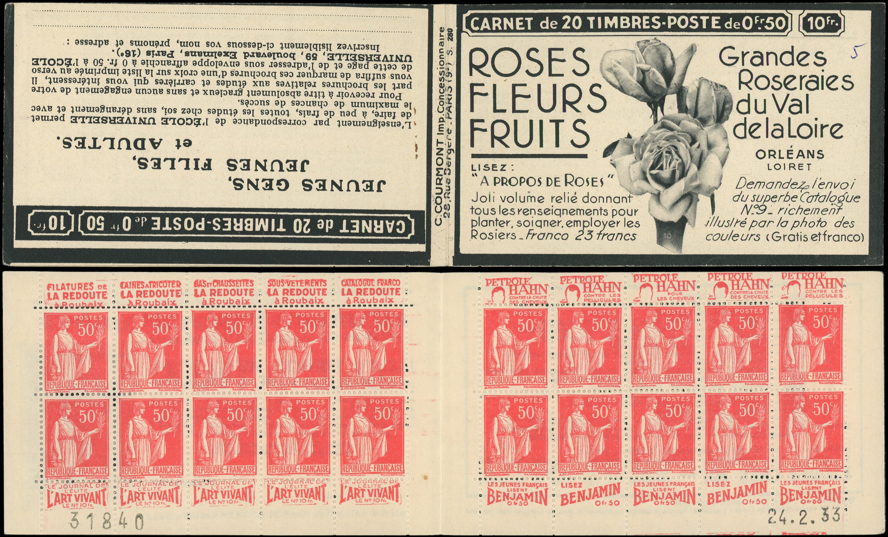 9056 283 image283-C13 Paix, 50c. rouge, n°283a, T I, S. 280, ROSES, n°31840 daté 24/2/33, stylo en C1, sinon Superbe (Image)