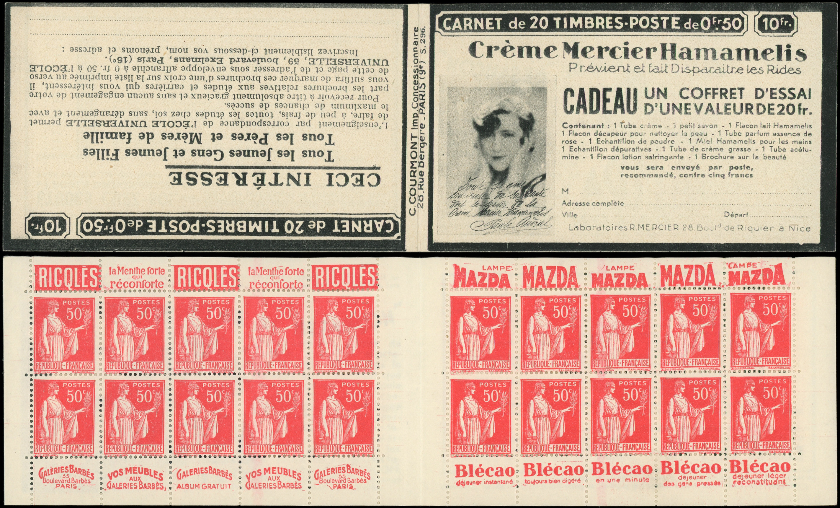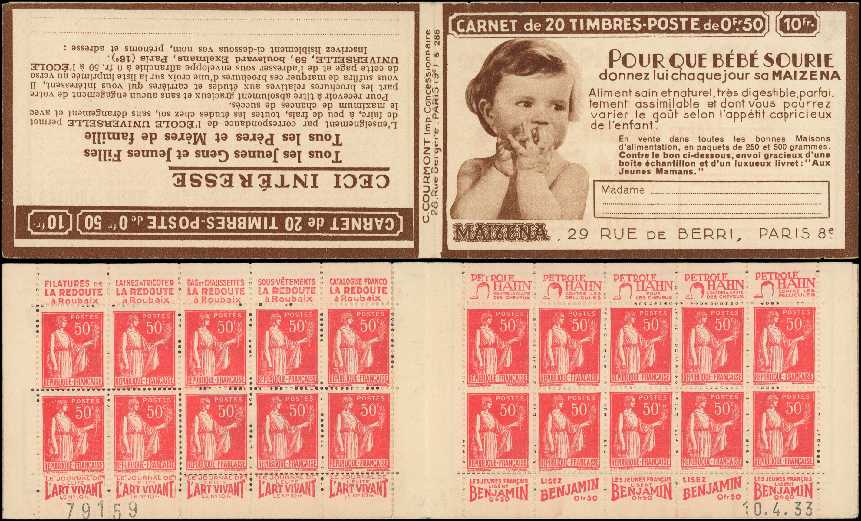 9060 283 image283-C13 Paix, 50c. rouge, n°283a, T I, S. 286, MAIZENA, feuillet de gauche consolidé avec charnières, sinon TB (Image)