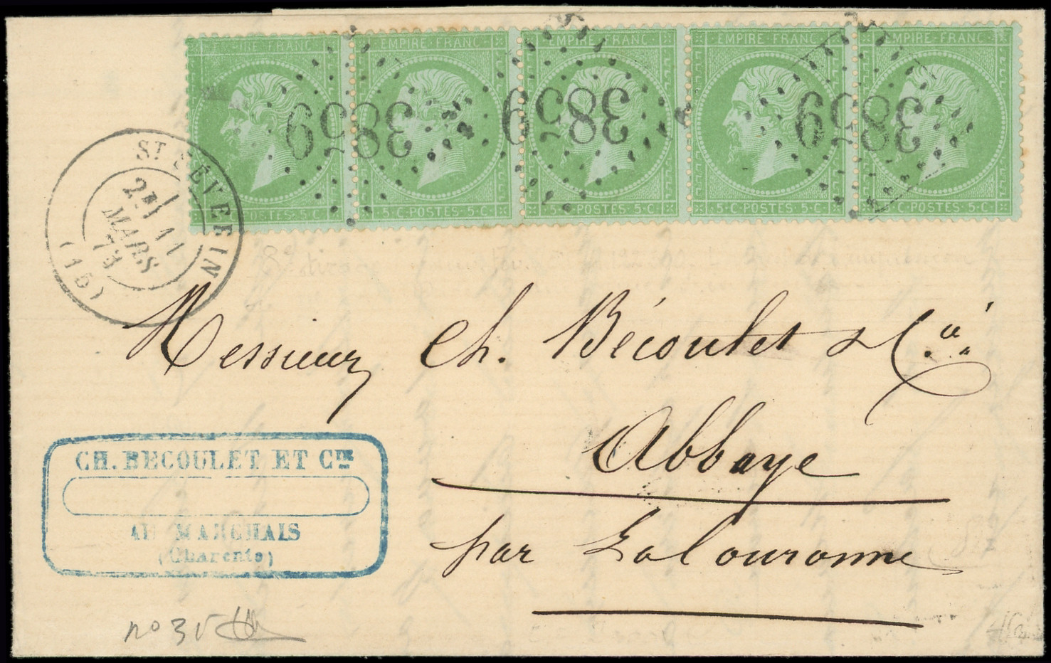 pâle sur bleu, BANDE de 5 obl. GC 3859 s. LAC, càd T17 St SEVERIN 11/3/73, nuance certifiée JF Brun, Superbe (Image) (Image2)