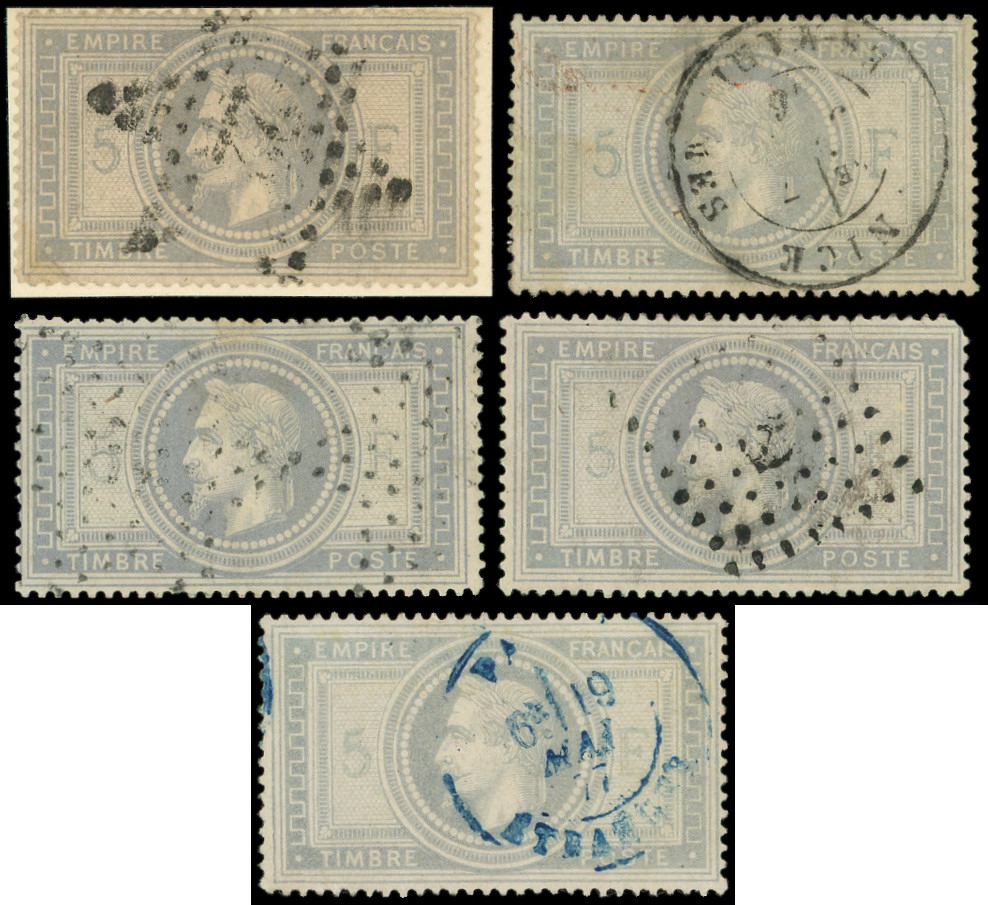 violet-gris, 5 ex. obl. dont ANCRE, càd BLEU, états divers (Image)