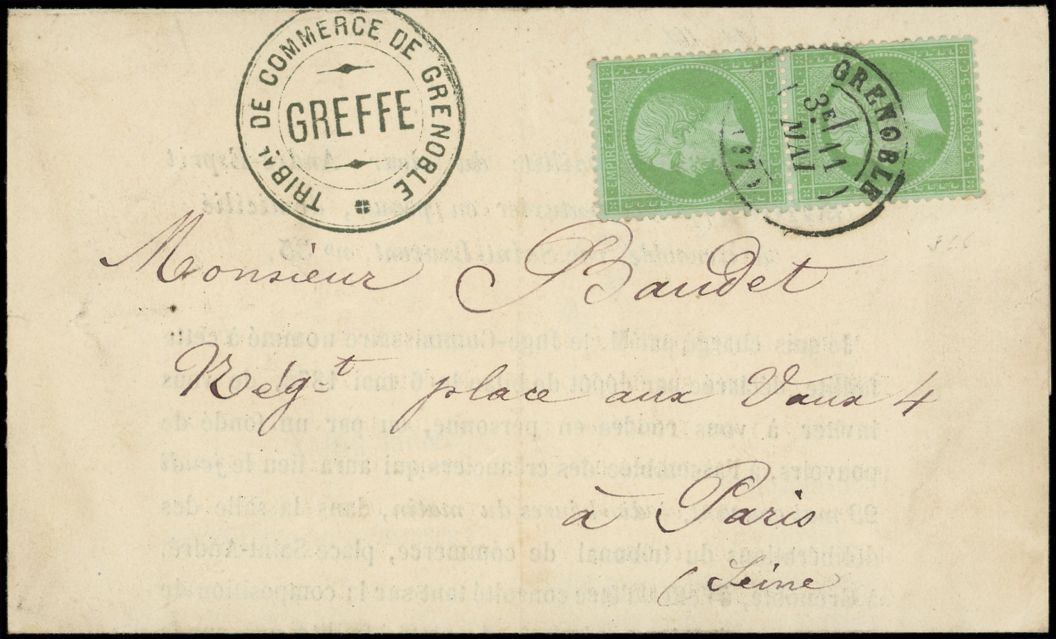 pâle sur bleu, PAIRE obl. càd T17 GRENOBLE 11/5/71 s. Imprimé du Greffe, Superbe (Image)