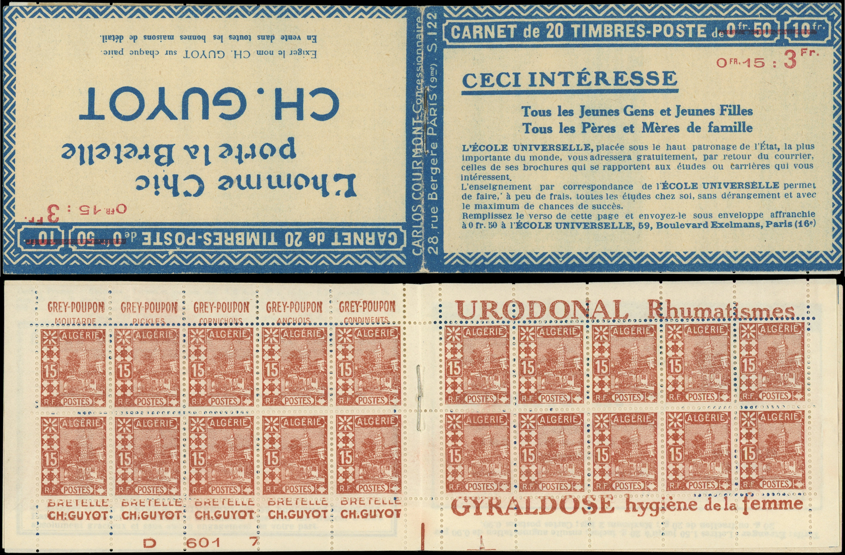 brun-rouge, S. 122, CH GUYOT surchargée, bas de feuille D 601 7, Superbe (Image)