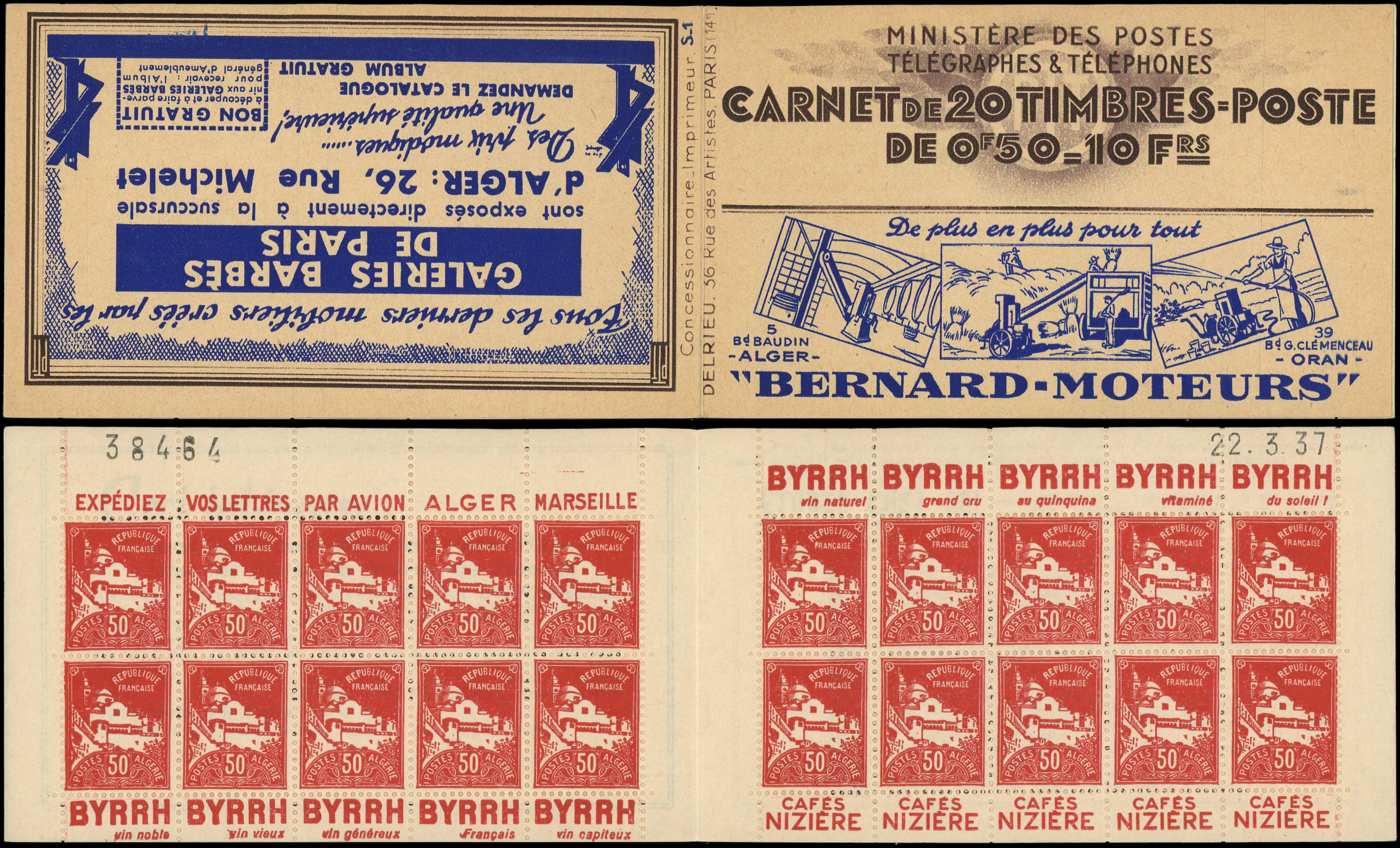 rouge, S. 1, BERNARD-MOTEURS/GALERIES BARBES, n°38464 daté 22/3/37, Superbe (Image)