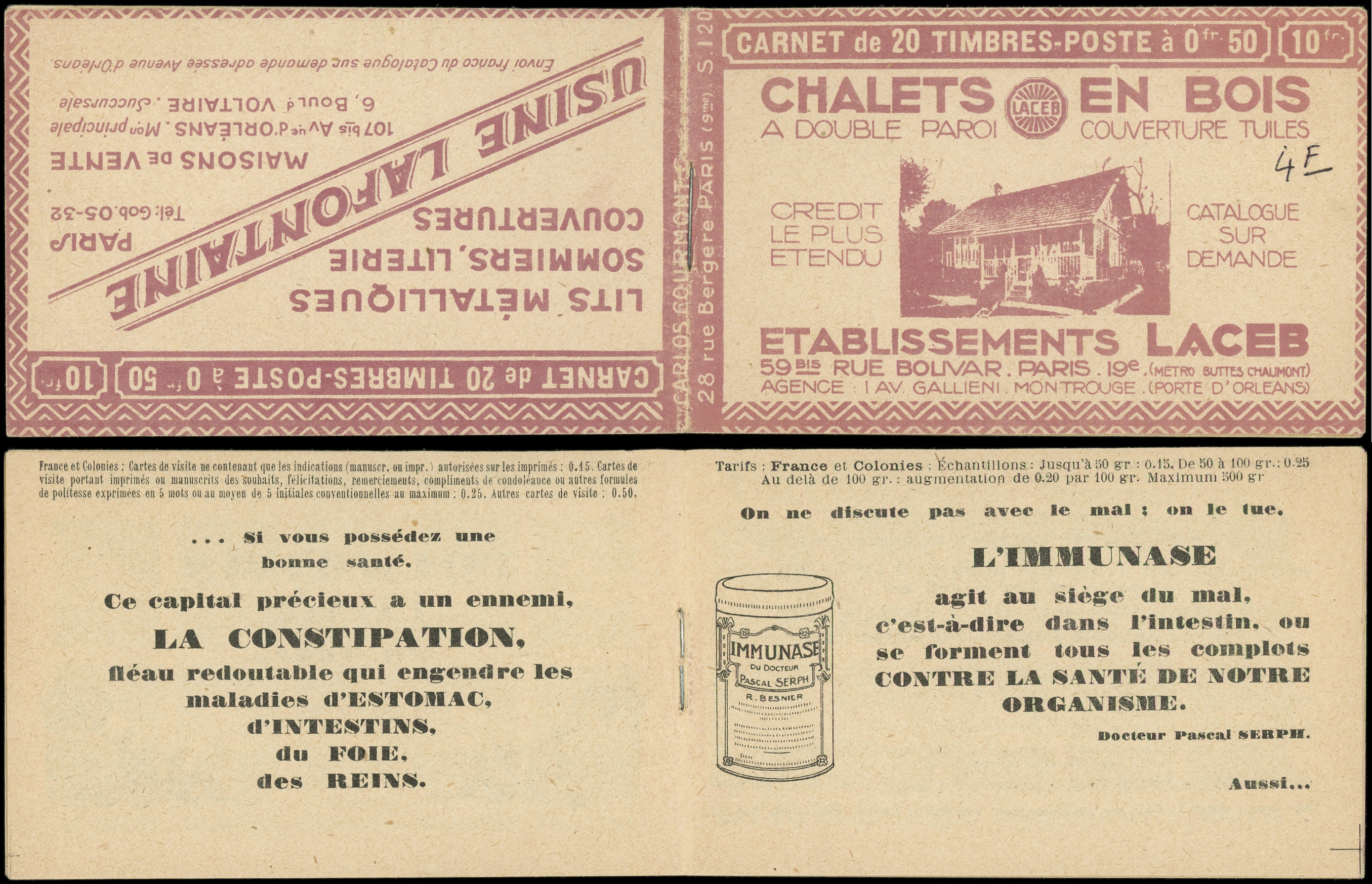 bleu, S. 120, CHALETS EN BOIS/LAFONTAINE, avec intercalaire, TTB (Image) (Image2)