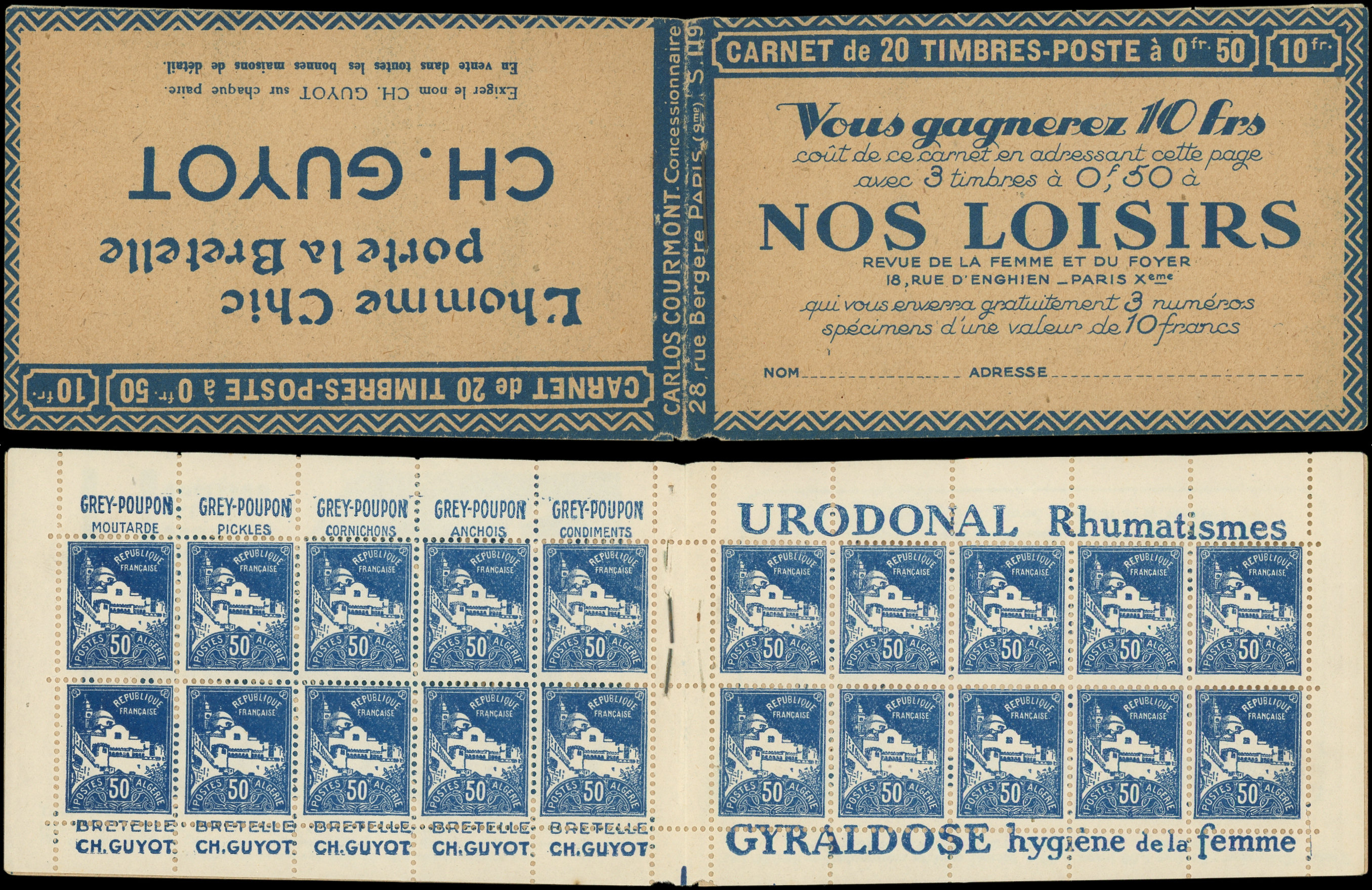 bleu, S. 119, NOS LOISIRS/CH. GUYOT, bas de feuille, qqs adh. de couv., rouss. sur une pub sinon TB (Image)