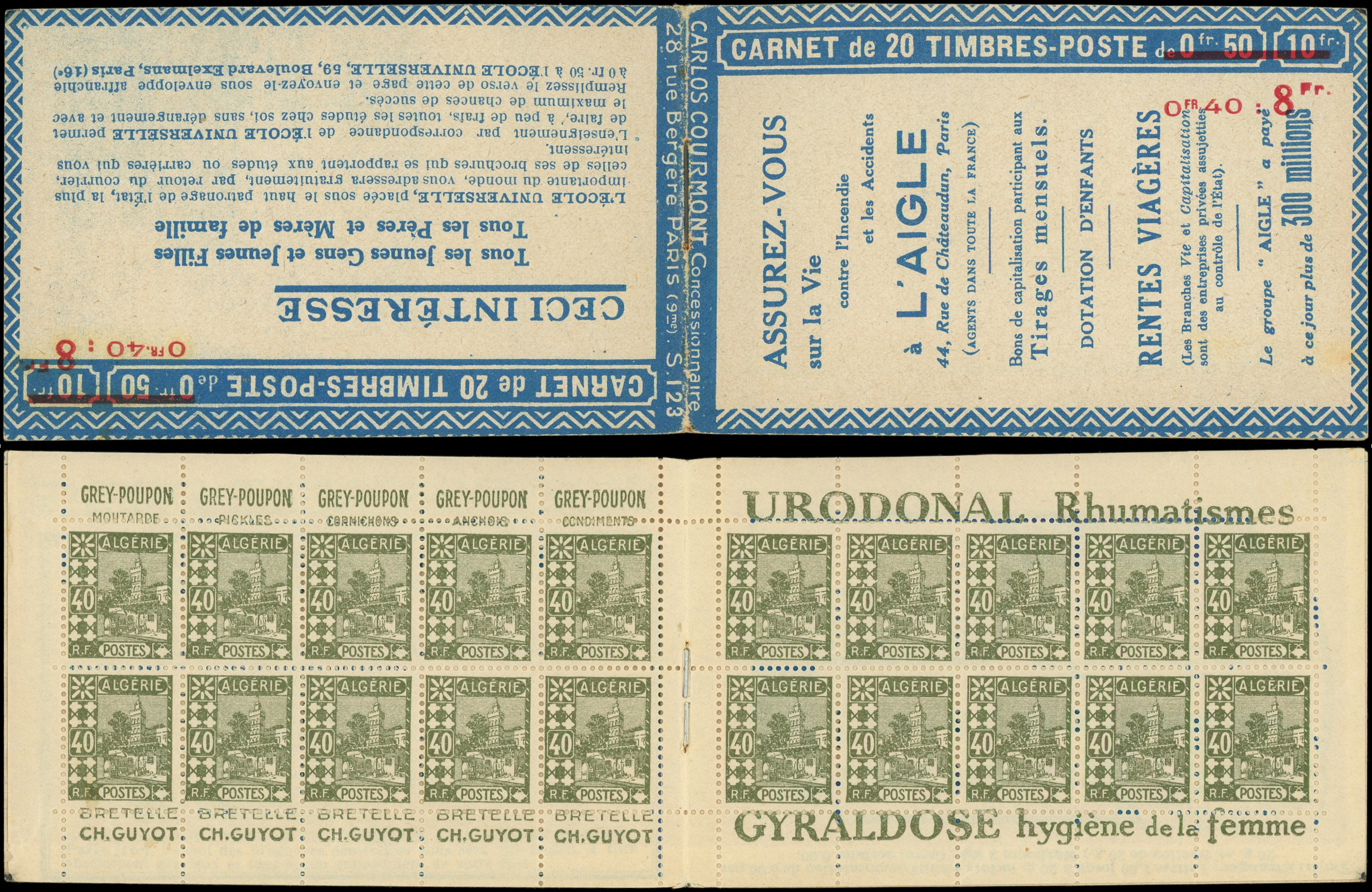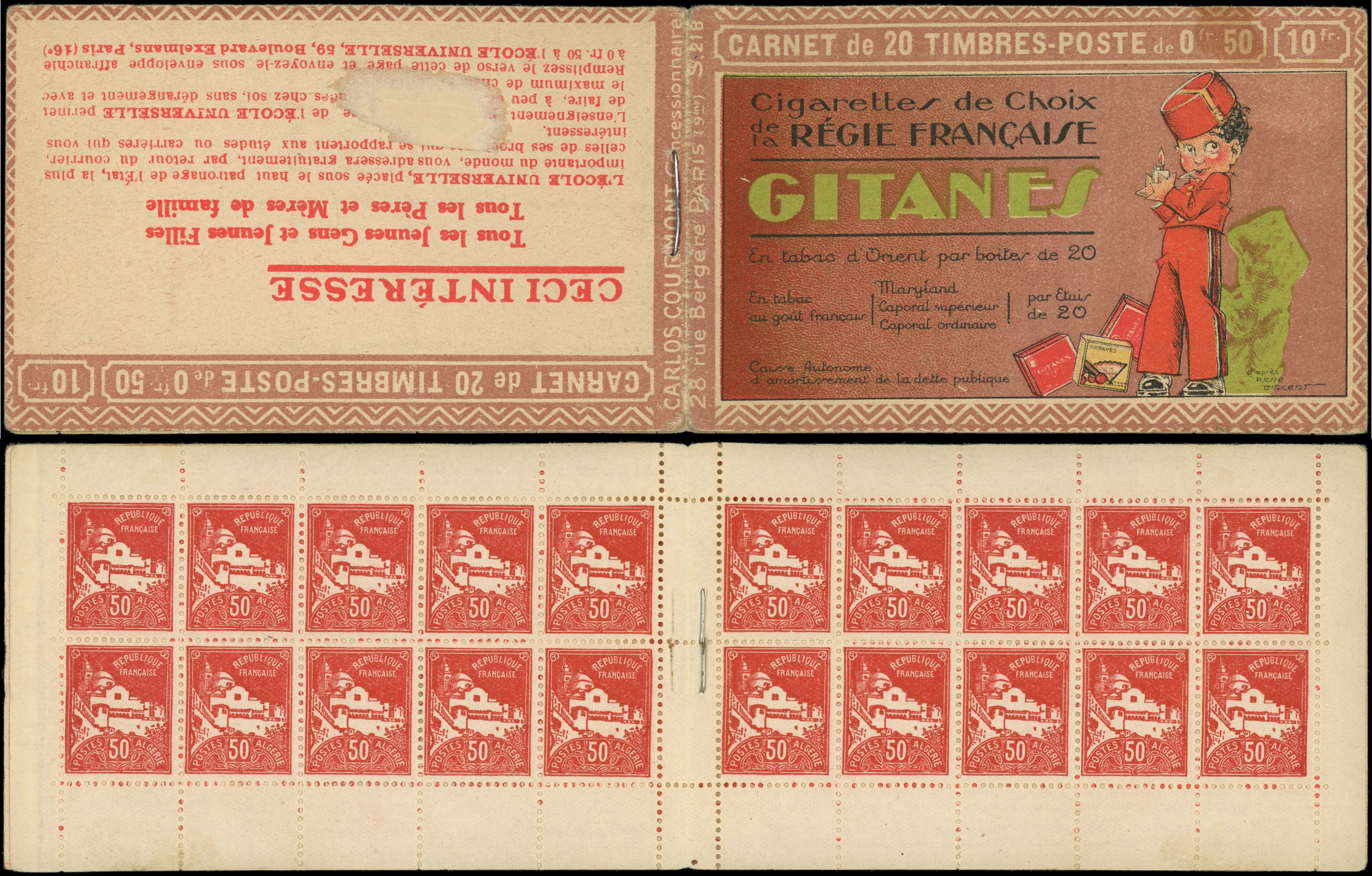 rouge, S. ALGERIE, CAFES NIZIERE/BERNARD-MOTEURS, 2 ex. inf. adh. de couv., TB (Image)