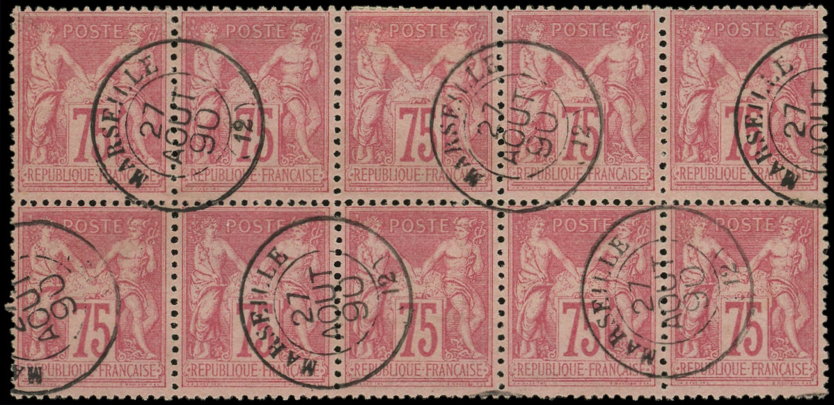 BLOC de 10 obl. càd MARSEILLE 27/8/90, bon centrage, Superbe. C (Image)