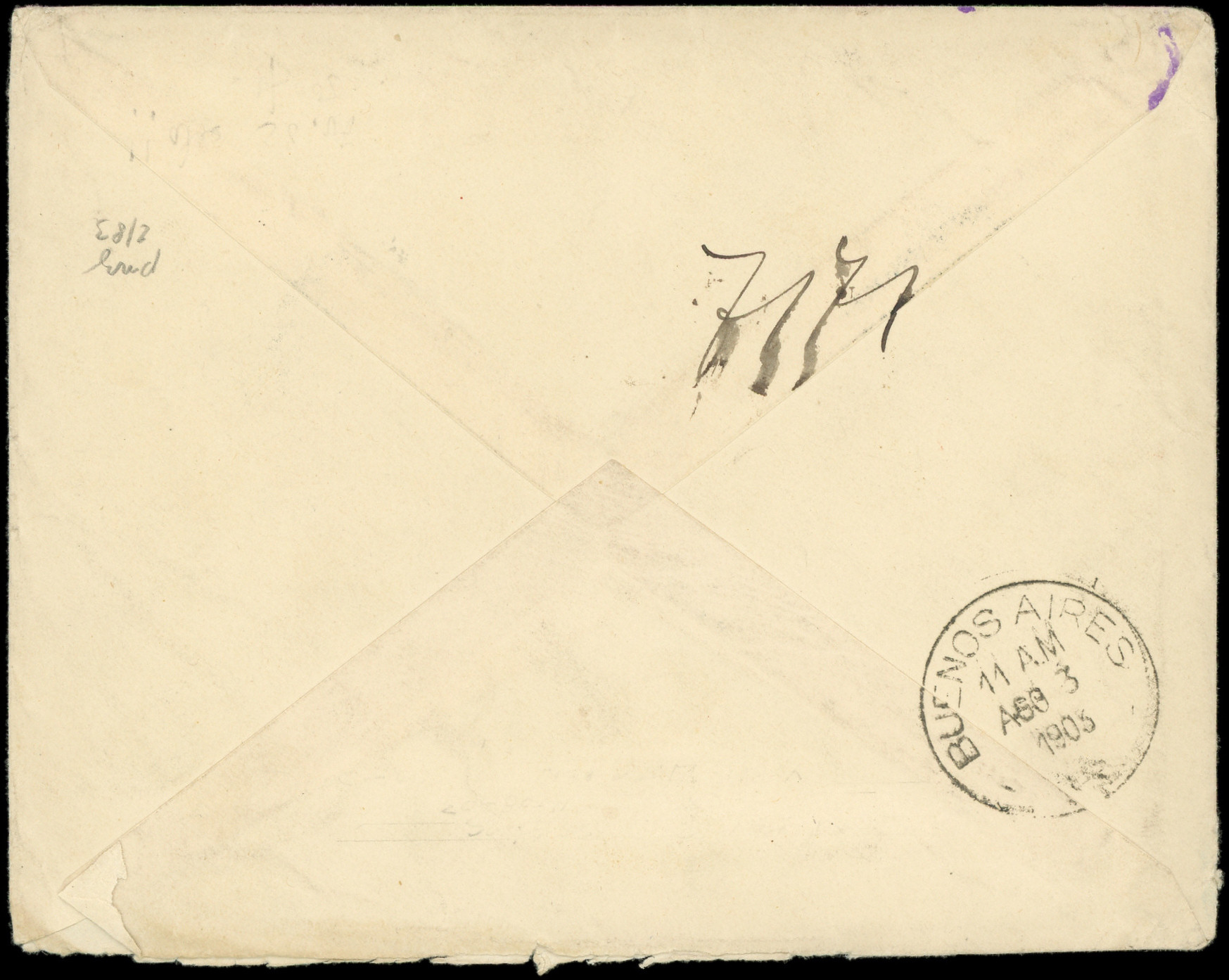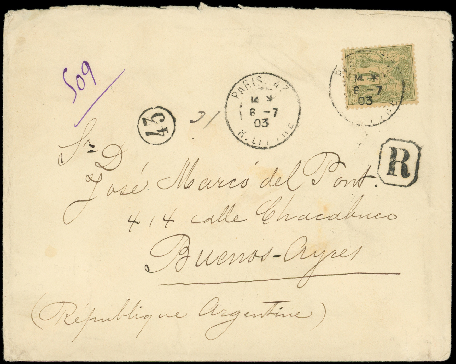 clair, obl. càd PARIS 43 6/7/03 s. Env. Rec., arr. BUENOS AIRES 3/8, TB (Image)