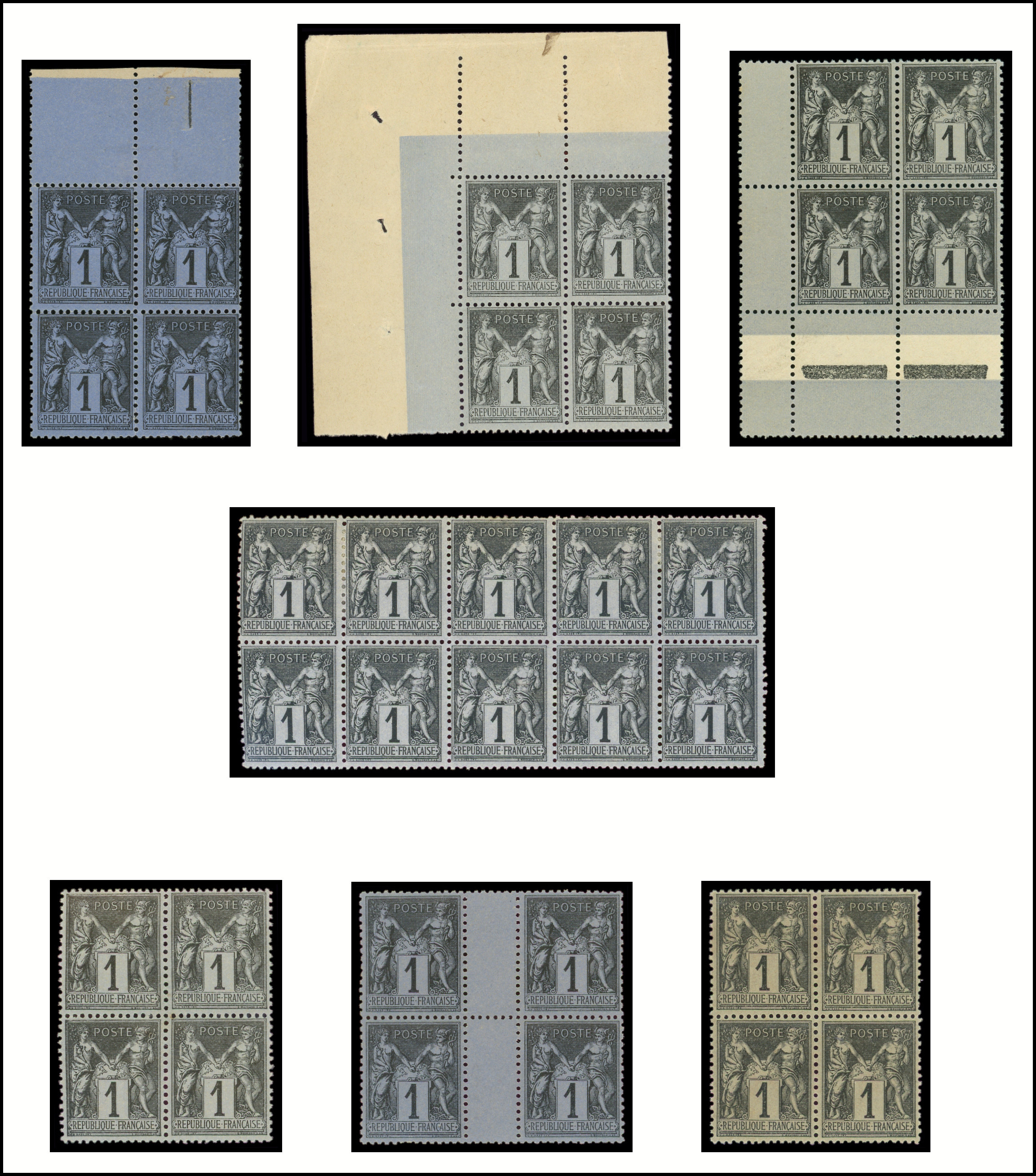 sur azuré, 121 ex., la plupart en blocs, nuances différentes, TB (Image) (Image2)