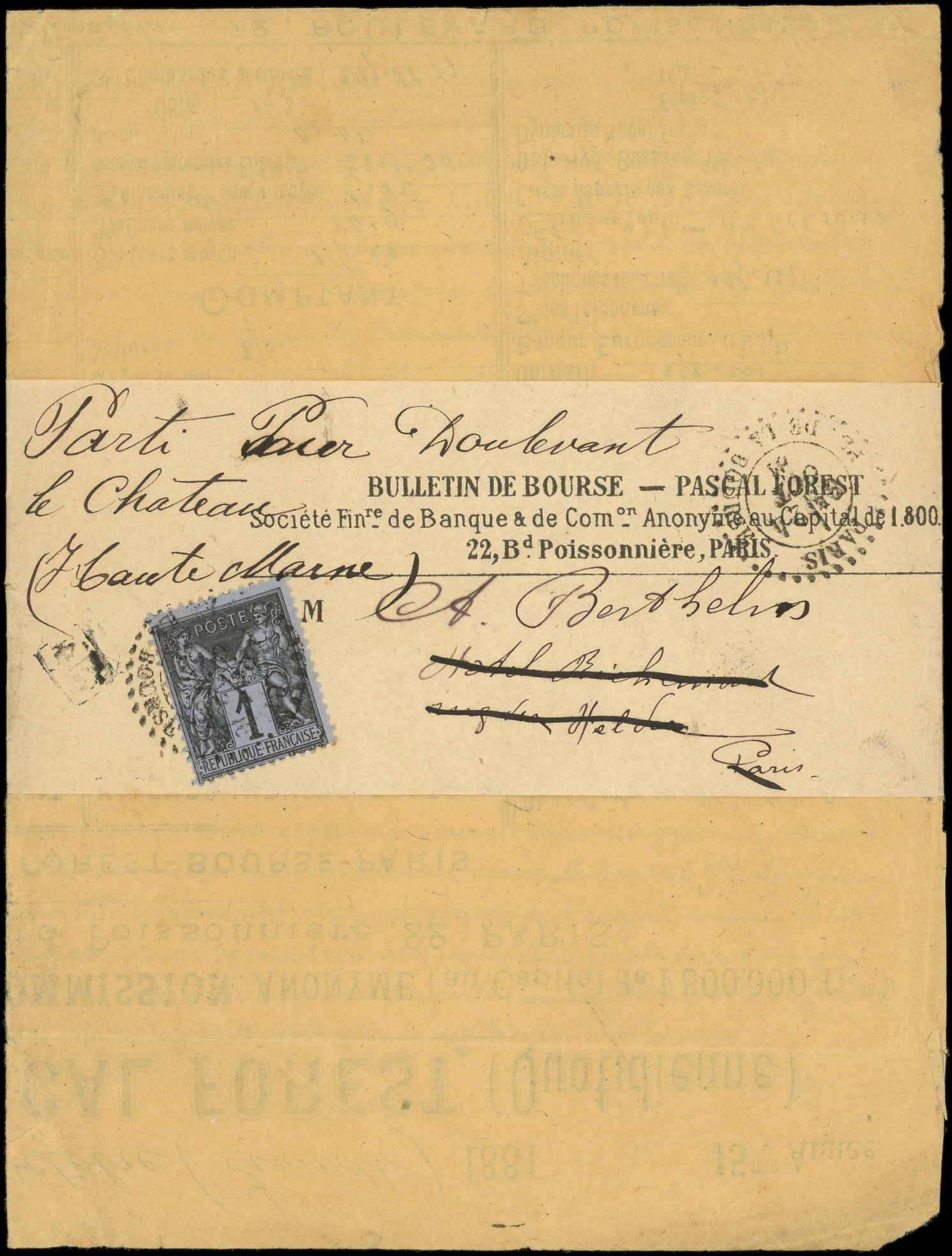 sur azuré, obl. càd d'Essai PL. DE LA BOURSE 24/10/81 s. bande avec imprimé, TB, Cérès N°4 (Image)