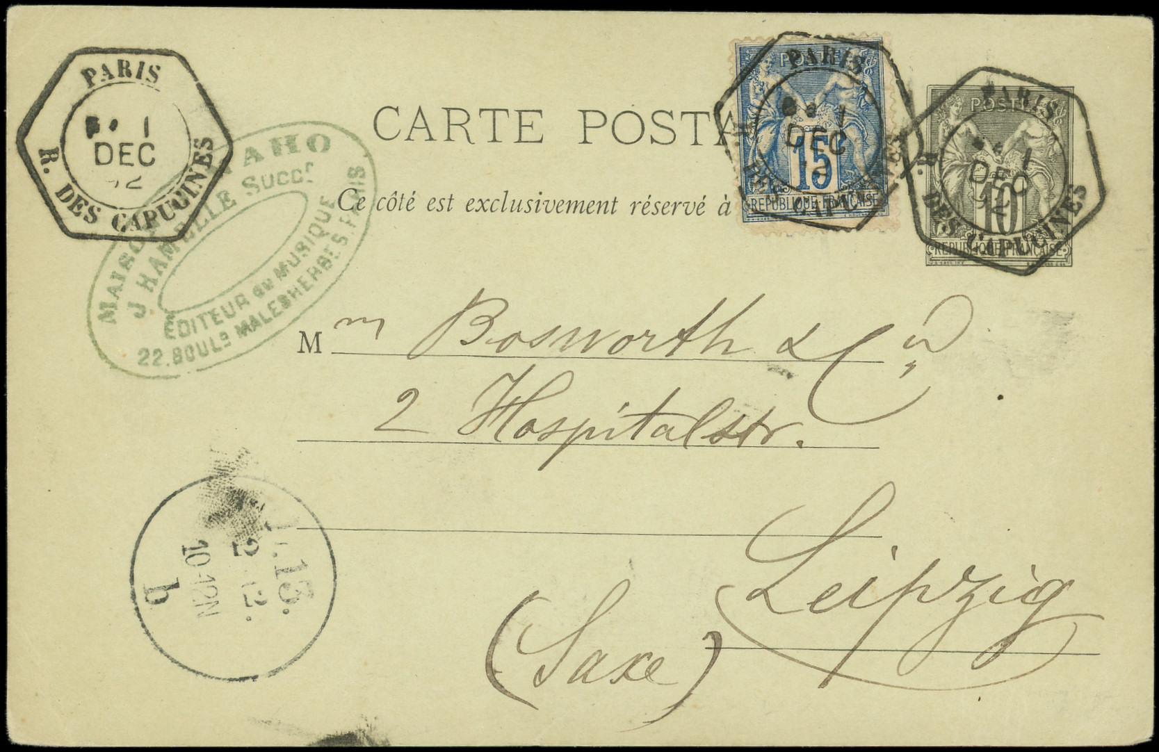 noir, carton vert, affr. N°101 (défx) obl. càd Hexag. de LEX B. DES CAPUCINES E1 1/12/92, pour la SAXE, TB (Image)