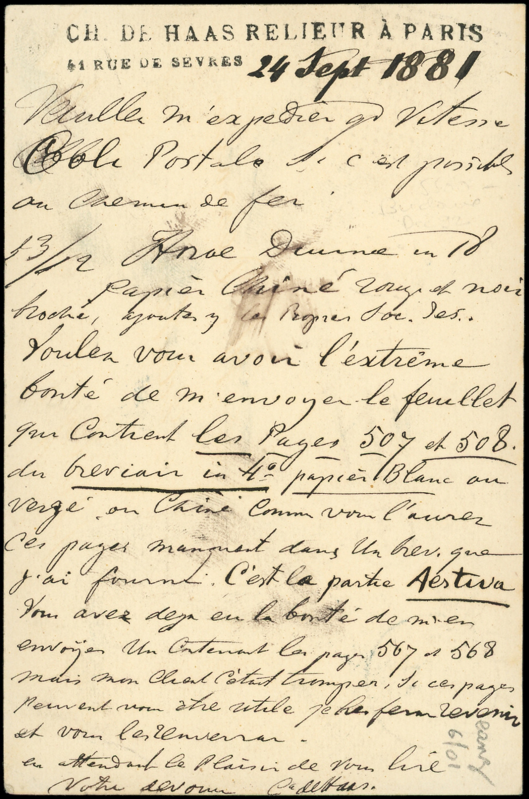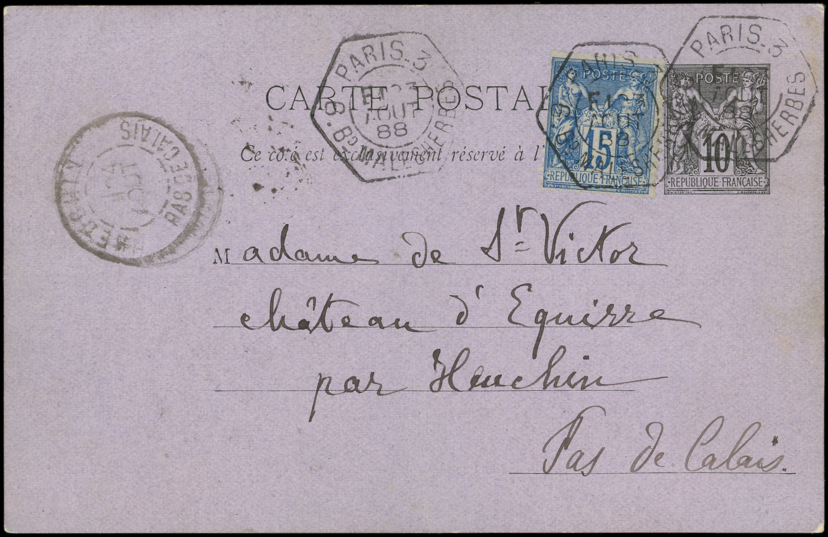 noir, carton violet (pliée) affr. N°90 obl. càd Hexag. de LEX PARIS 3 Bd MALESHERBES 23/8/88, TB (Image)