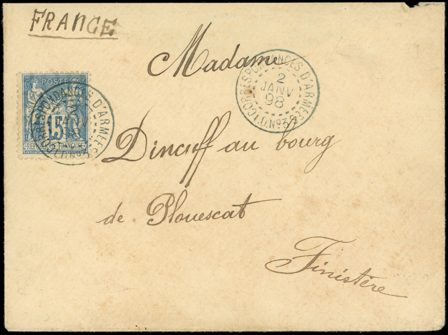 obl. càd bleu CORRESPONDANCE D'ARMEES/L.D N°3 2/1/98 s. Env., TTB (Image)