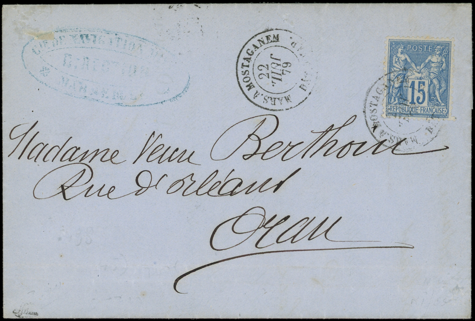 obl. càd MARS. A MOSTAGANEM/BAT A VAP 22/7/79 (mois renversé) sur LAC du 18/7, R et TTB (Image) (Image2)
