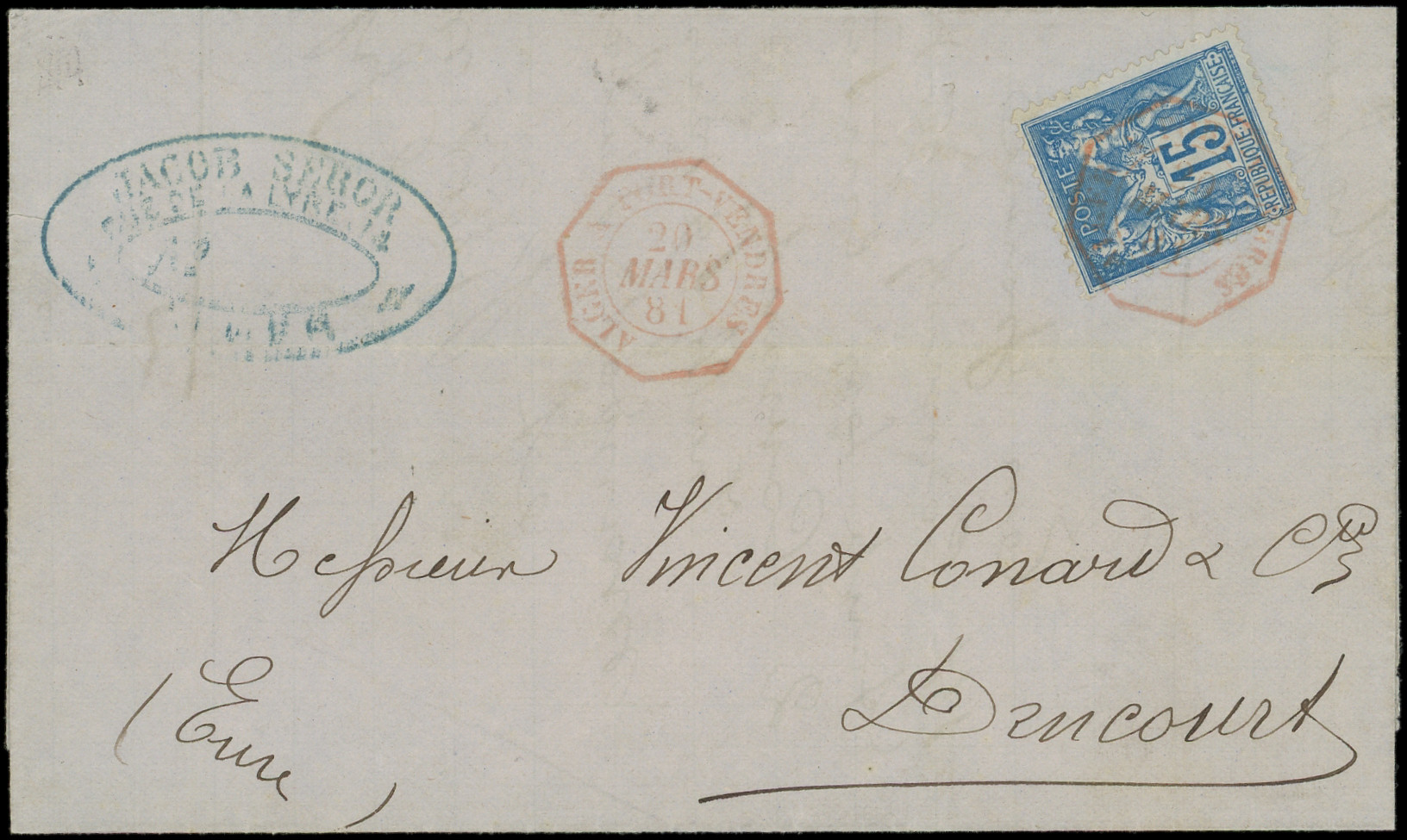 obl. càd Octog. rouge ALGER A PORT-VENDRE 29/3/81 s. LAC, TB (Image) (Image2)