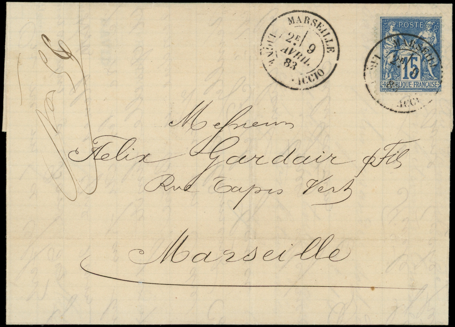 obl. càd MARSEILLE/LIGNE D'AJACCIO 9/4/83 s. LAC, TTB (Image)
