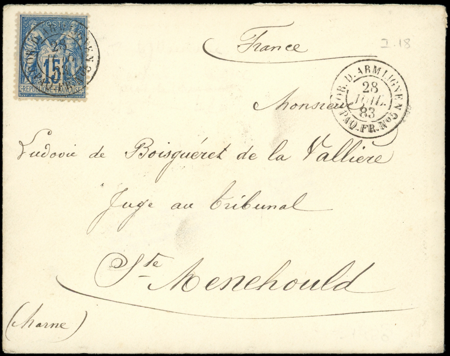 obl. càd COR D. ARM LIGNE N PAQ FR N°5 28/7/83 s. Env., TB/ TTB (Image) (Image2)