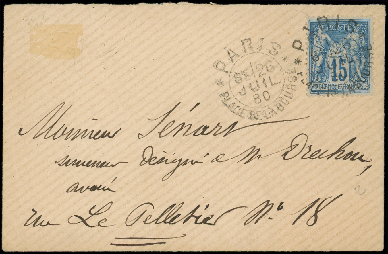 obl. càd d'Essai PLACE DE LA BOURSE 26/7/80 s. Env., TB, Cérès N°2 (Image)