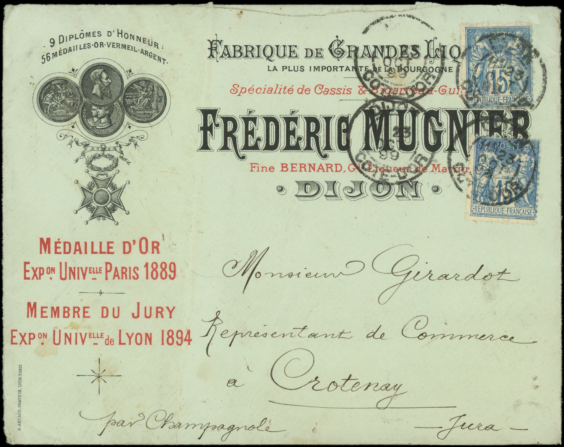 (2) obl. DIJON 23/10/99 s. Env. illustrée Frédéric Mugnier-Cassis, TB (Image)