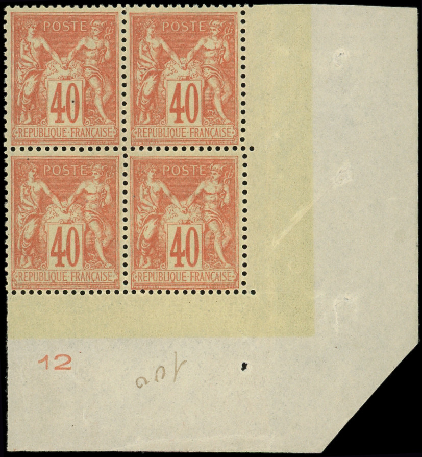 rouge-orange, BLOC de 4 grand cdf, "12", centrage parfait, Superbe (Image)