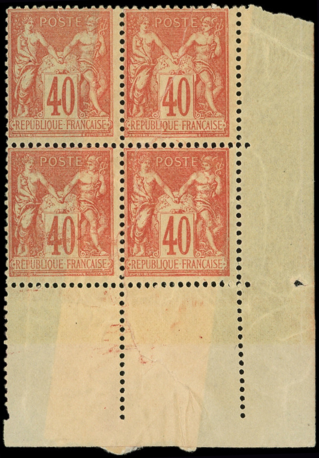 rouge-orange, BLOC de 4 cdf, IMPRESSION sur RACCORD pour réparer une déchirure de la feuille, RR, TB (Image) (Image2)