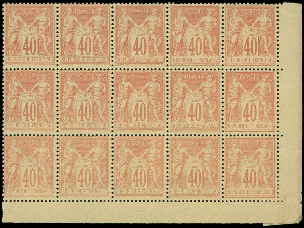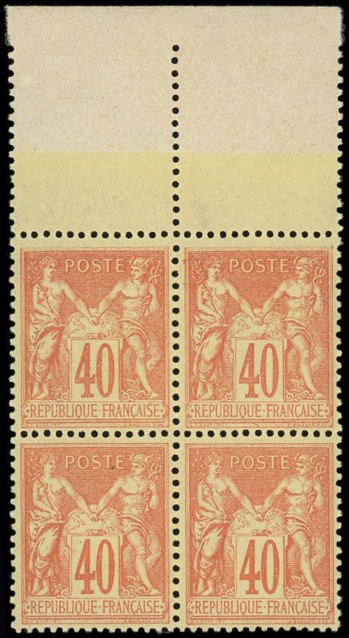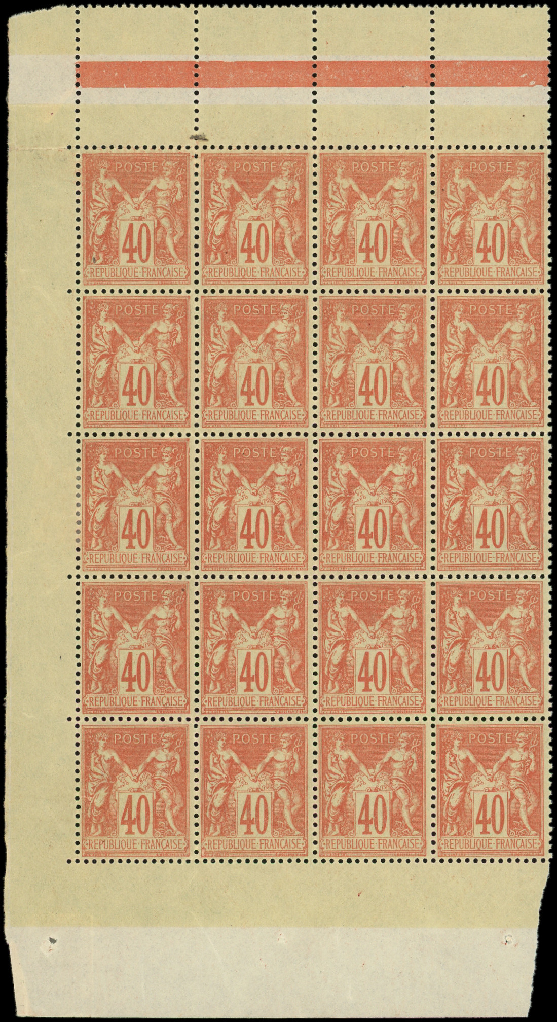 orange, BLOC de 20 avec 3 bords, nuance foncée, très bon centrage, TTB, cote des timbres (Image)
